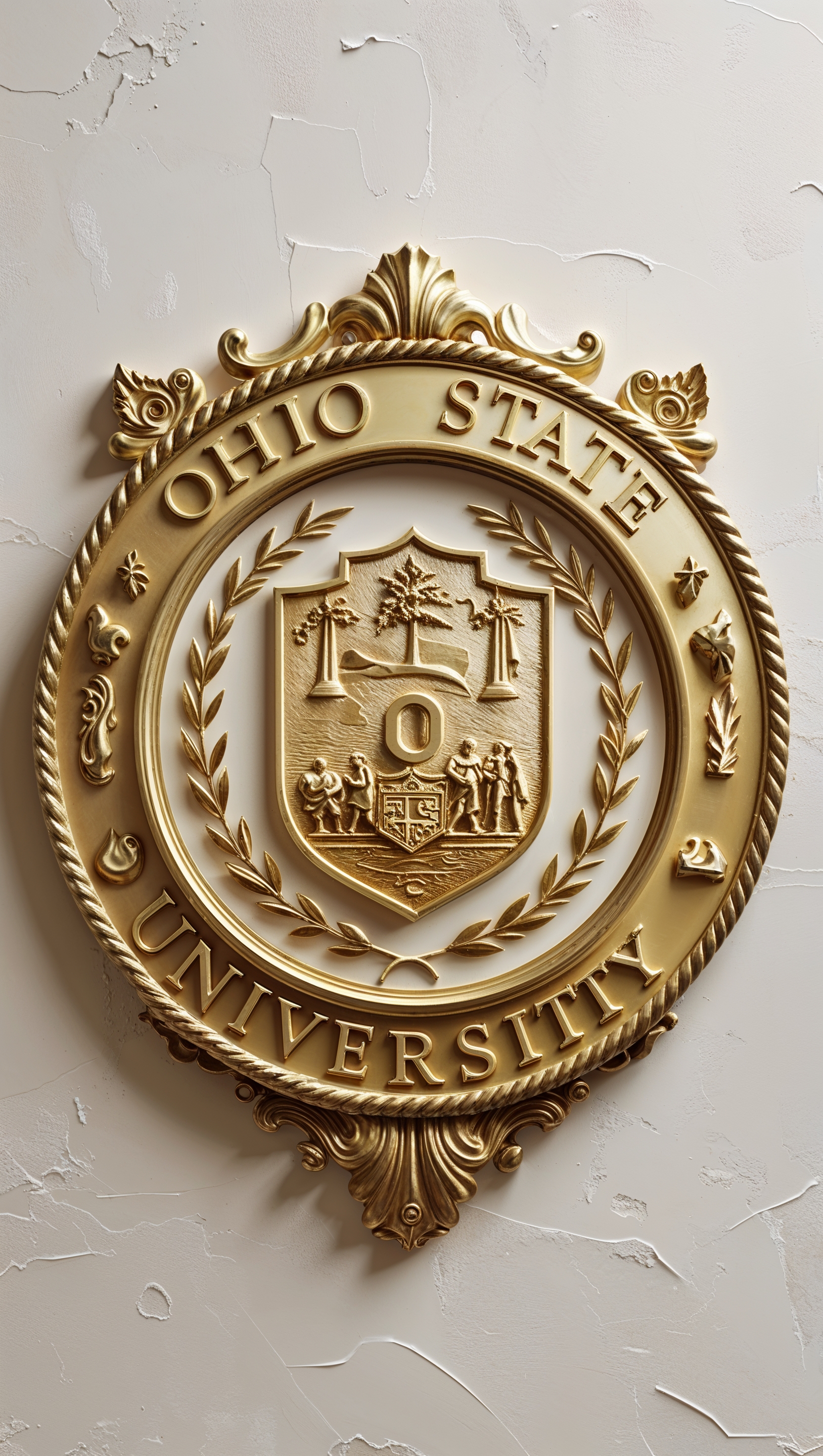 1664x2944 Ohio State University seal in golden texture, elegant and classic design, iPhone wallpaper