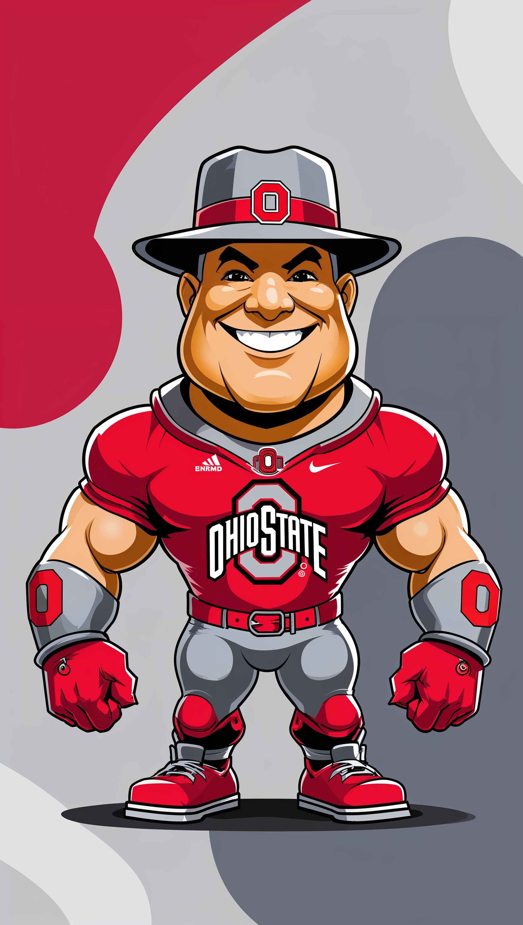 1664x2944 Ohio State Buckeyes mascot in cartoon style, center-focused iPhone wallpaper