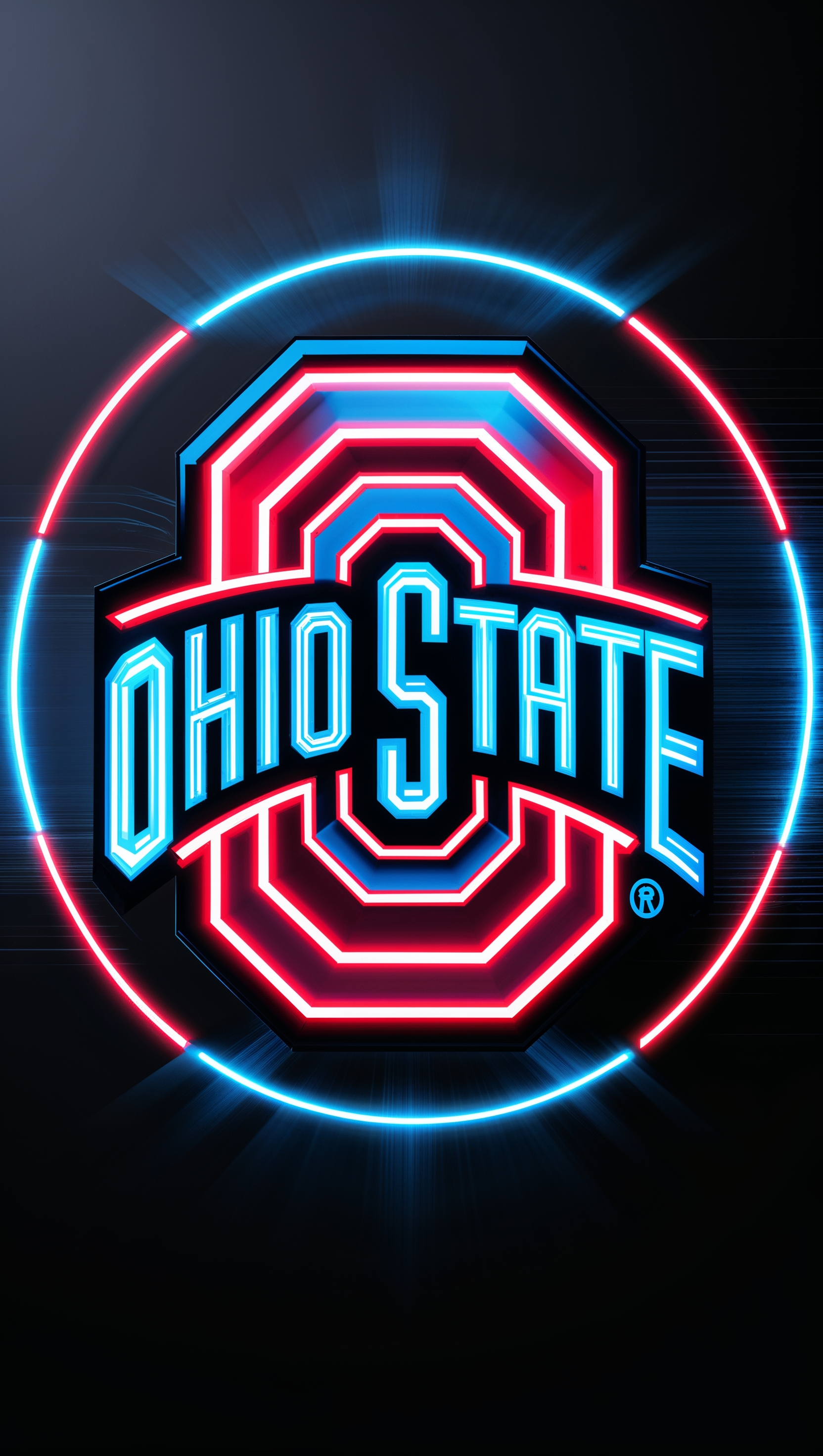 1664x2944 Ohio State University in cyberpunk style, neon lights and dark tones, iPhone wallpaper