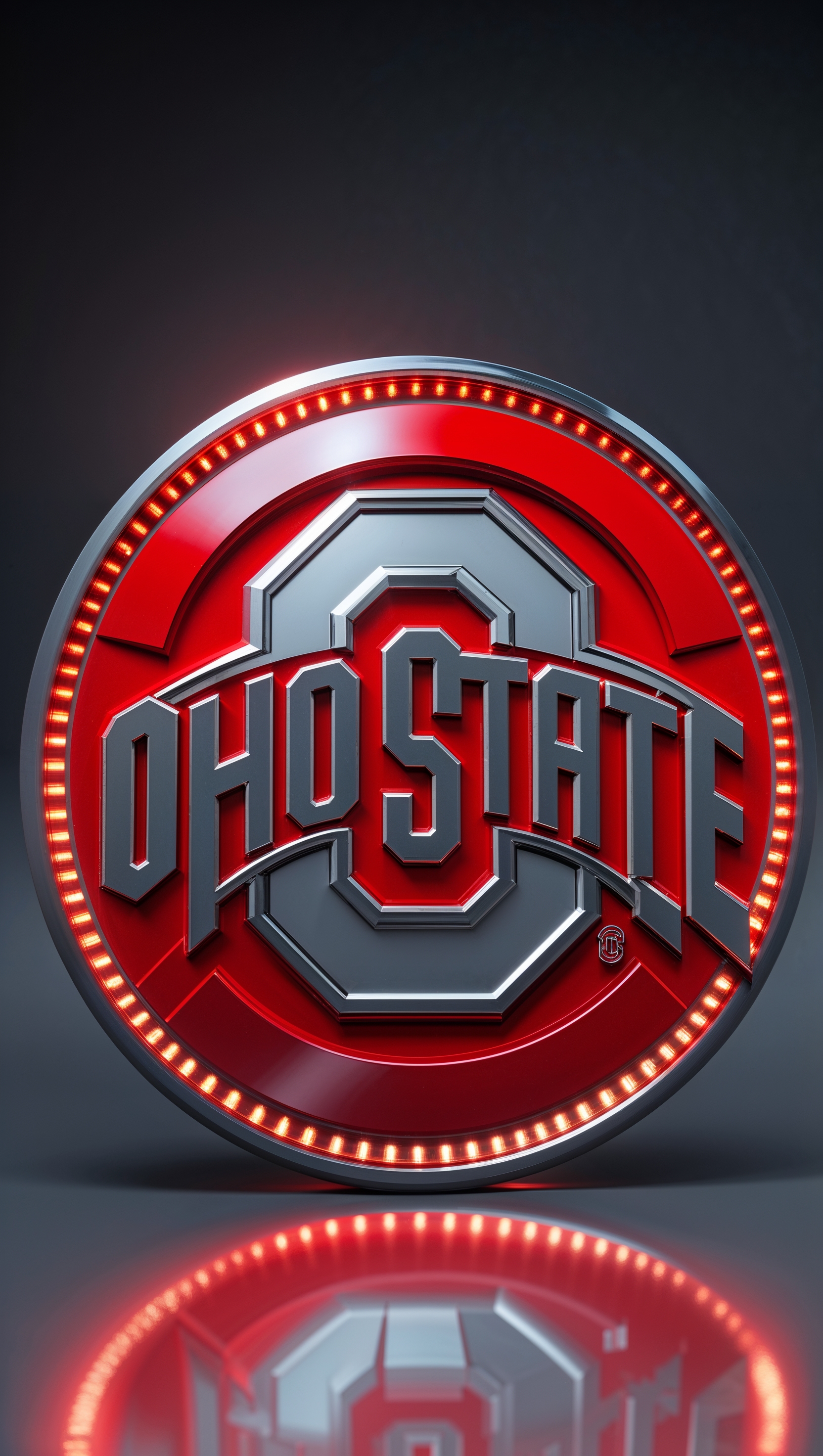 1664x2944 Red and gray Ohio State emblem in 3D style, glowing effect, iPhone wallpaper