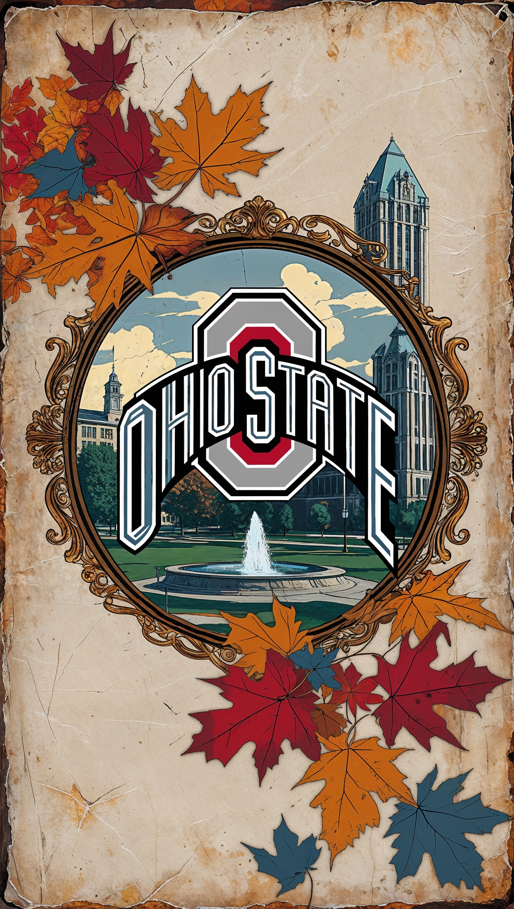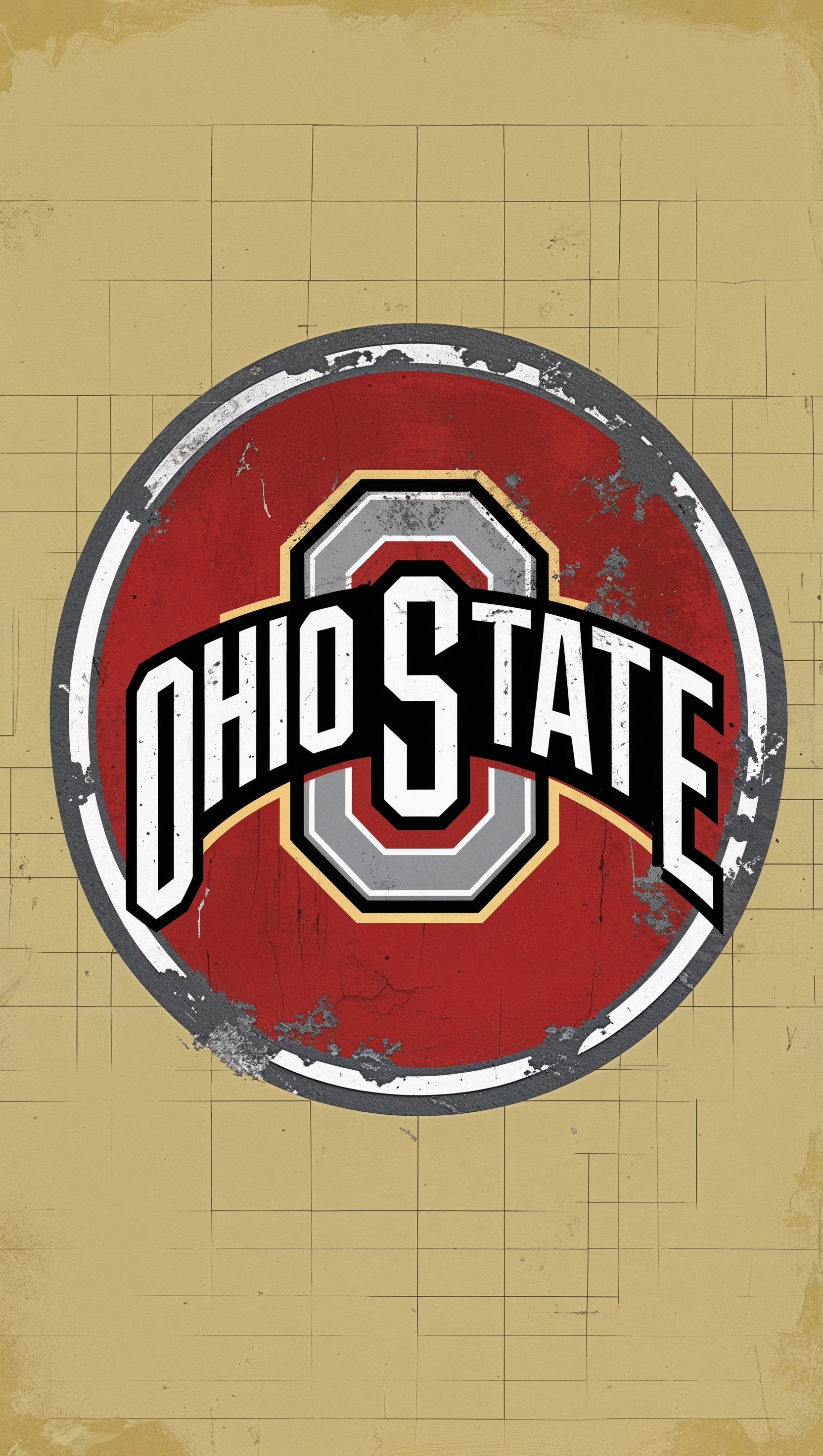 1664x2944 Vintage postcard-style illustration of Ohio State, textured background, iPhone wallpaper