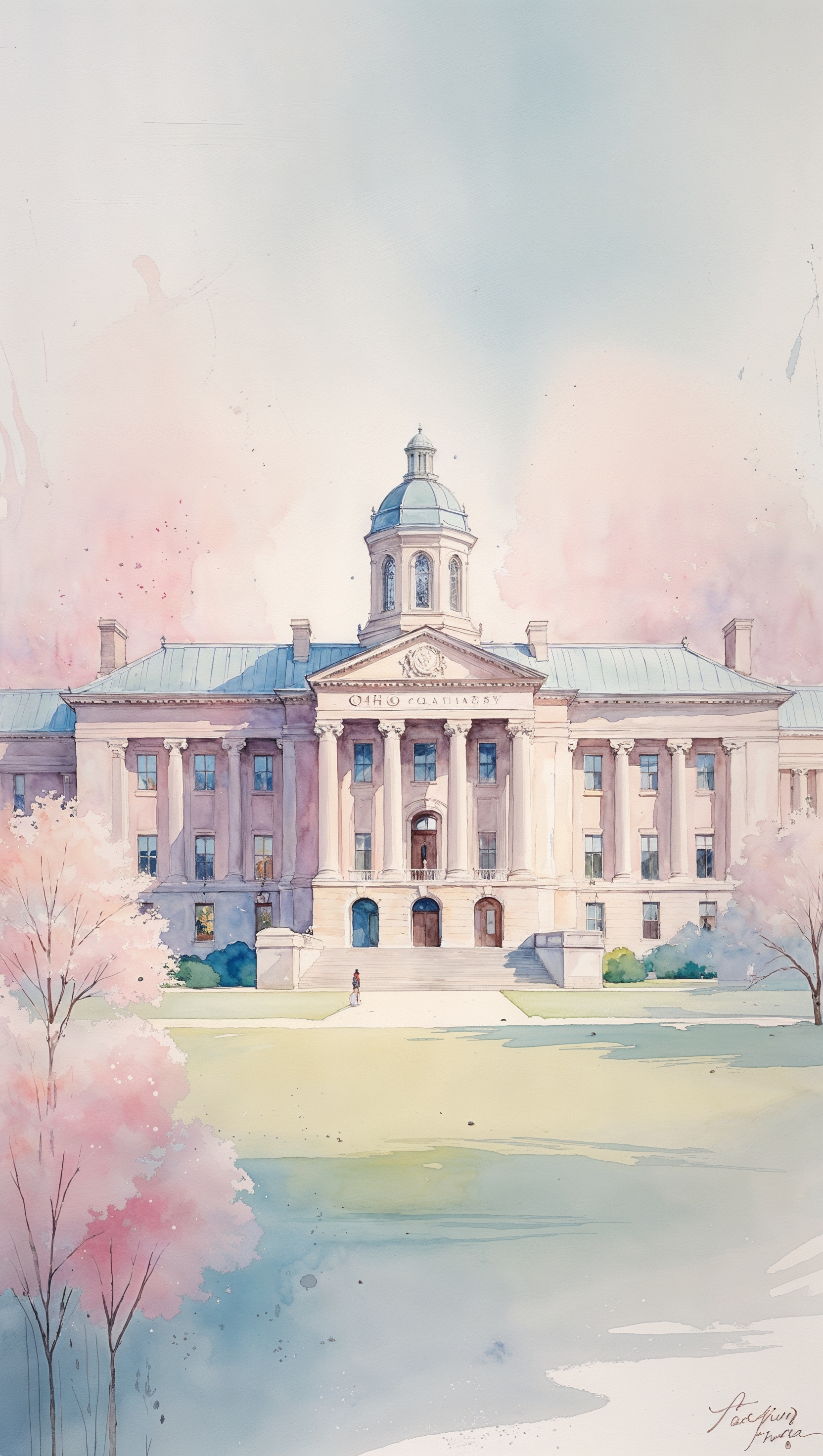 1664x2944 Ohio State University drawn in watercolor painting style, soft pastel colors, iPhone wallpaper