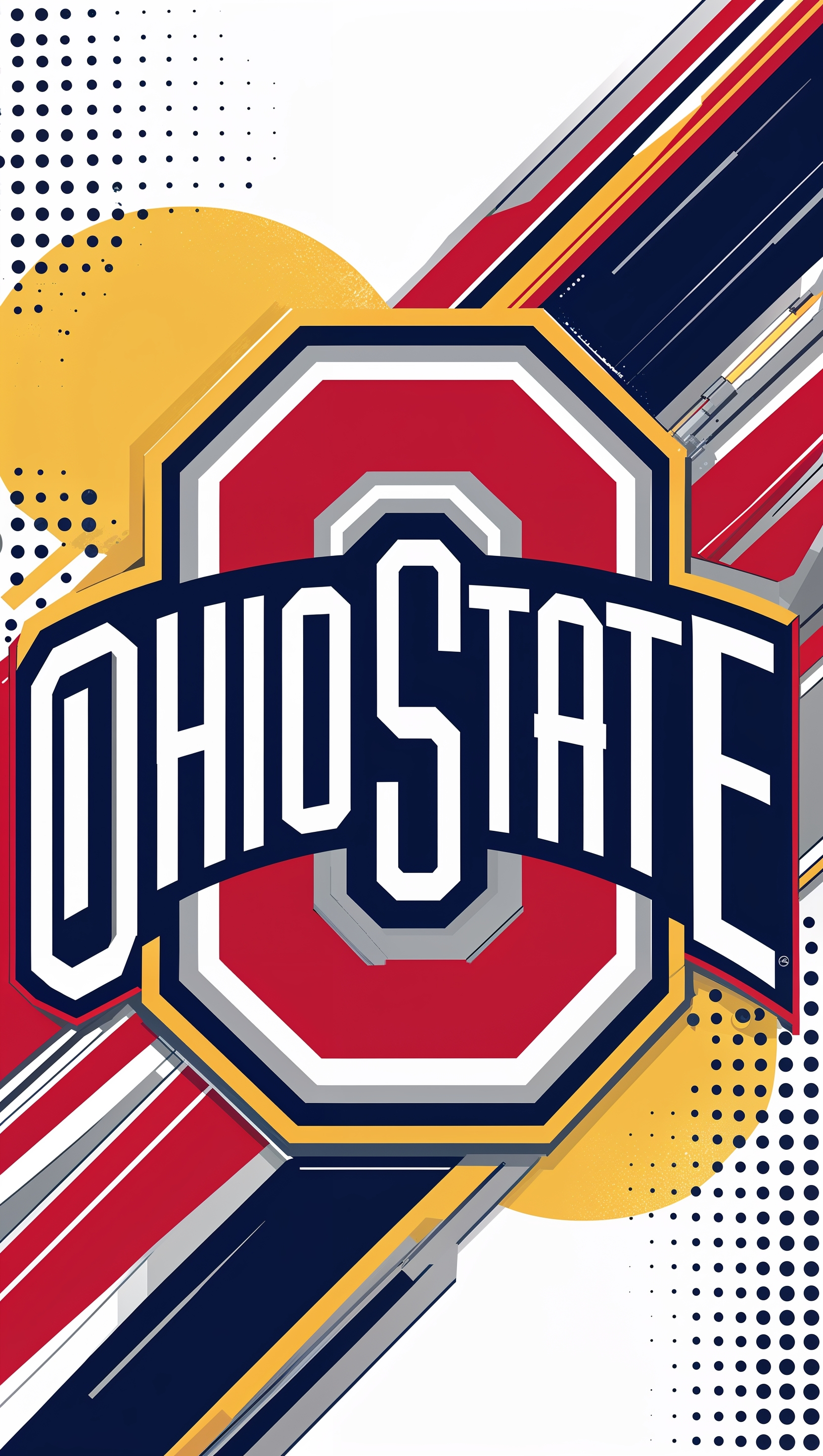 1664x2944 Pop art version of Ohio State University logo in bright colors, iPhone wallpaper