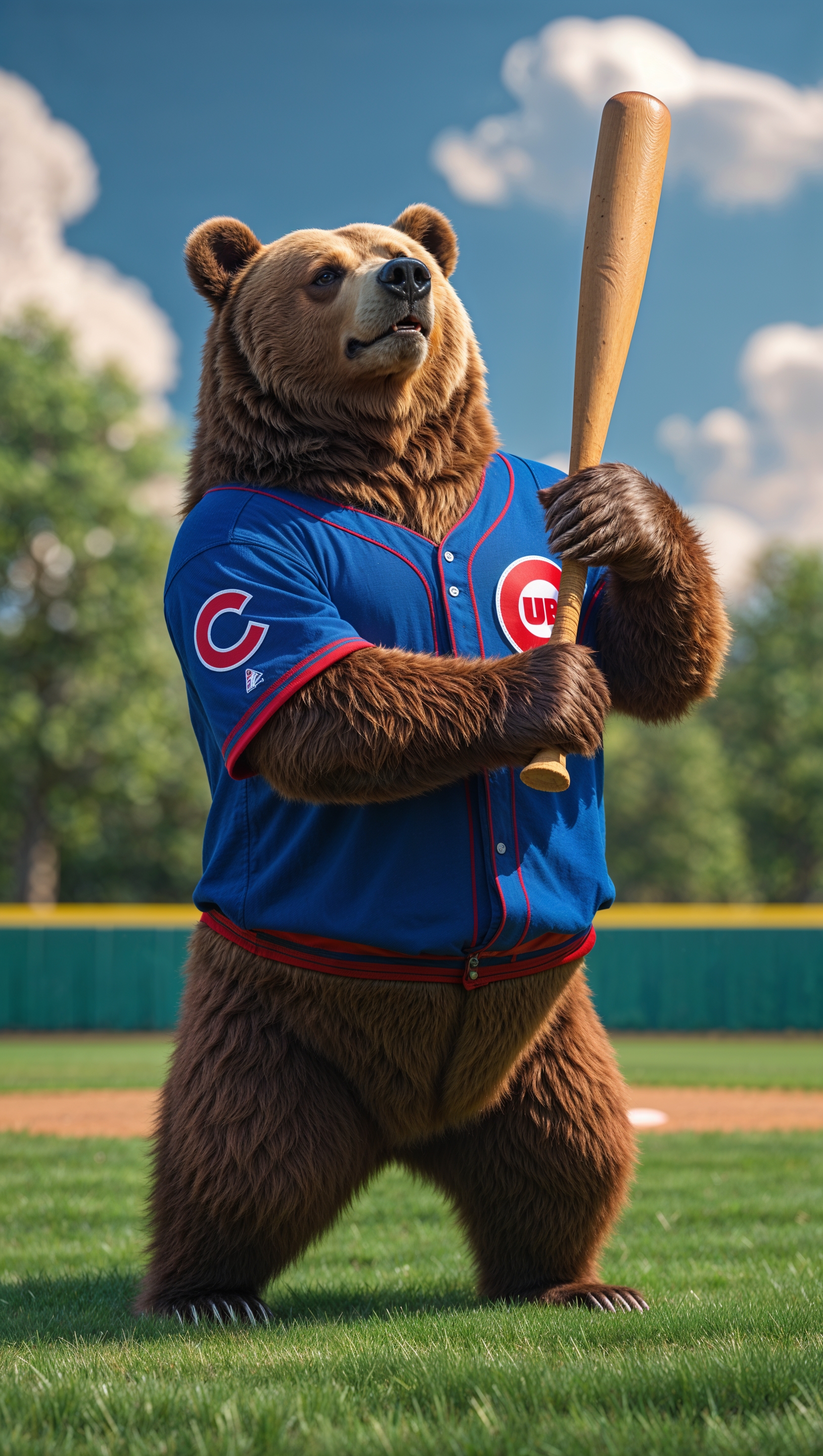 1664x2944 Realistic bear wearing Chicago Cubs jersey playing baseball