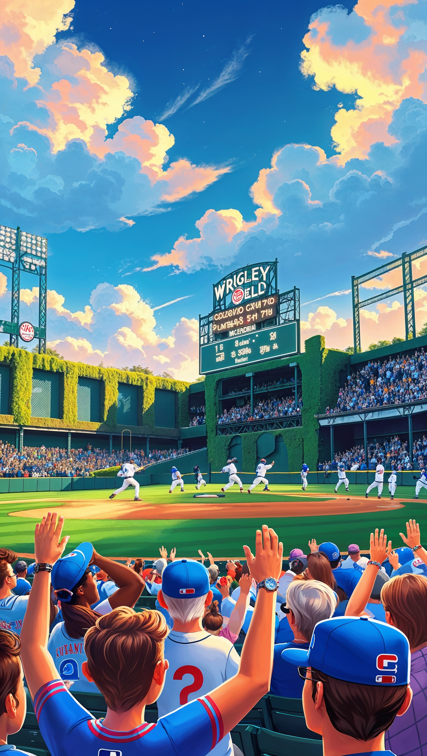 1664x2944 Cinematic wallpaper of a game at the Cubs' home stadium