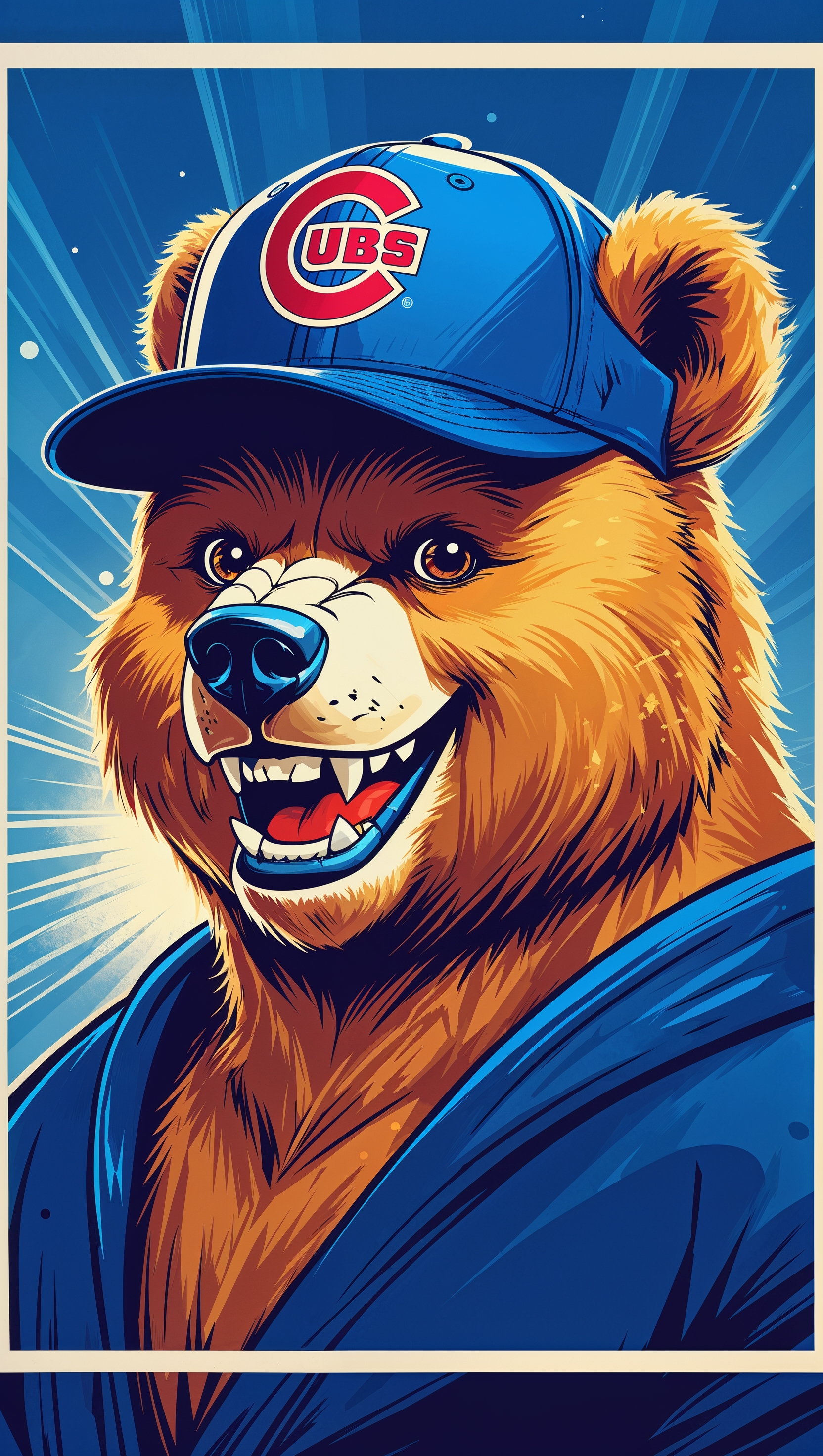 1664x2944 Graphic design of a bear with Cubs cap in comic book style