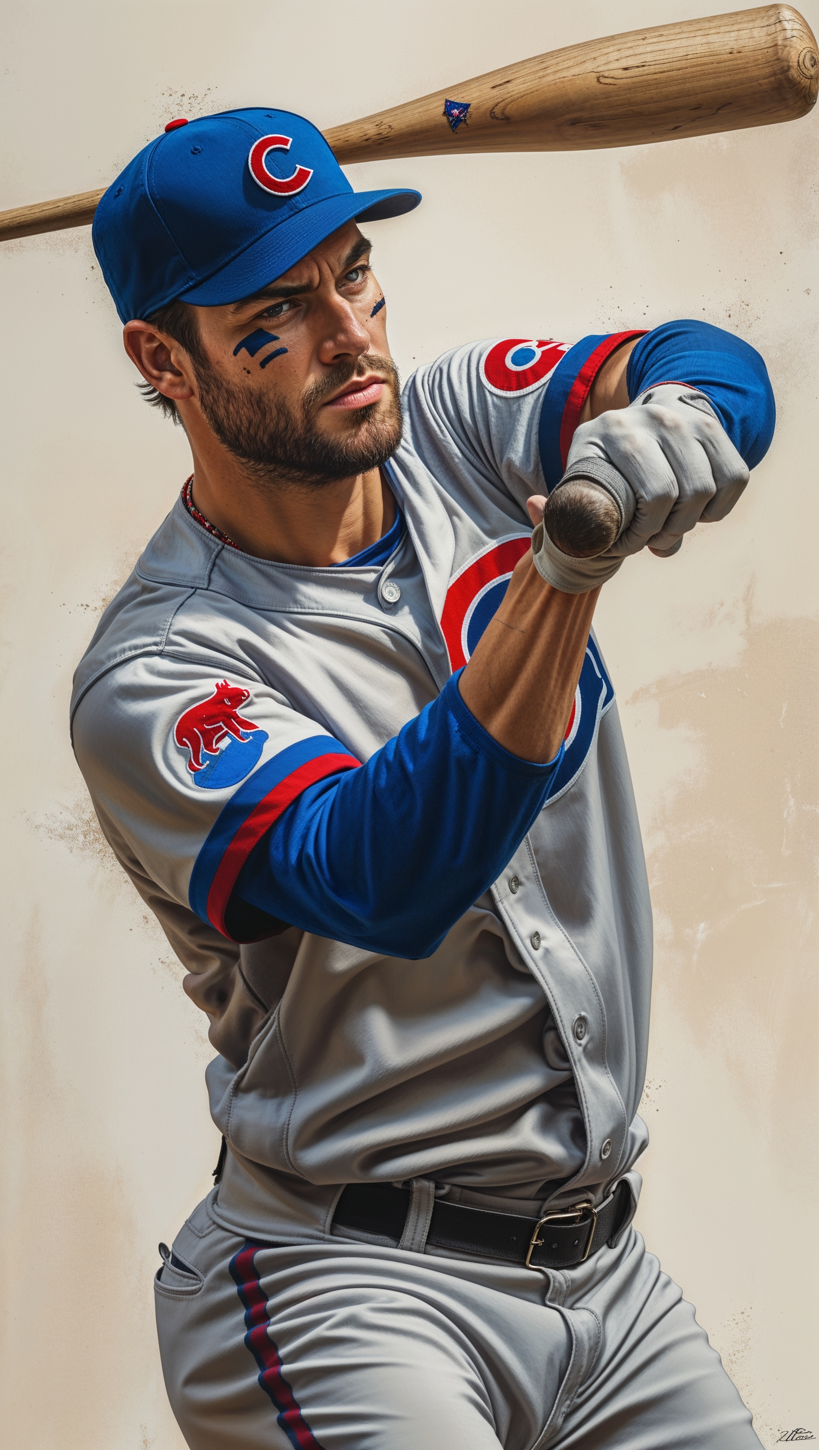 1664x2944 Baseball player swinging bat wearing a Chicago Cubs uniform