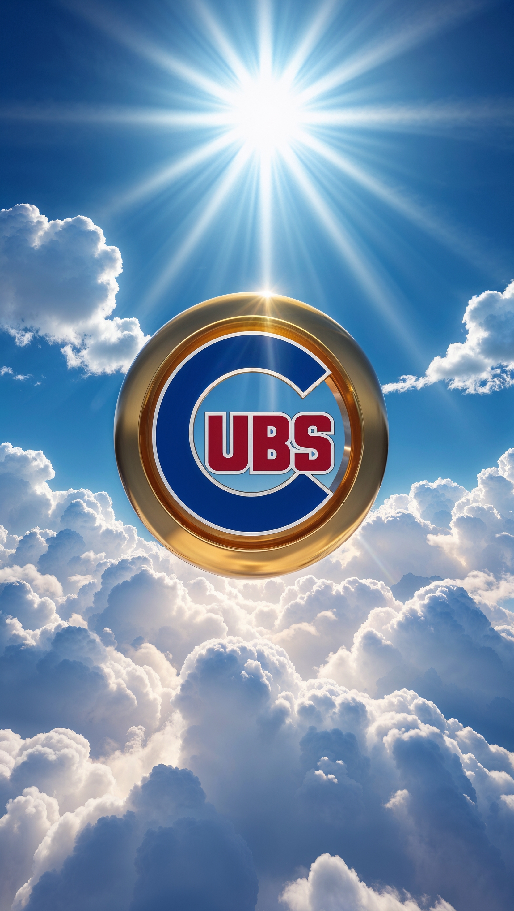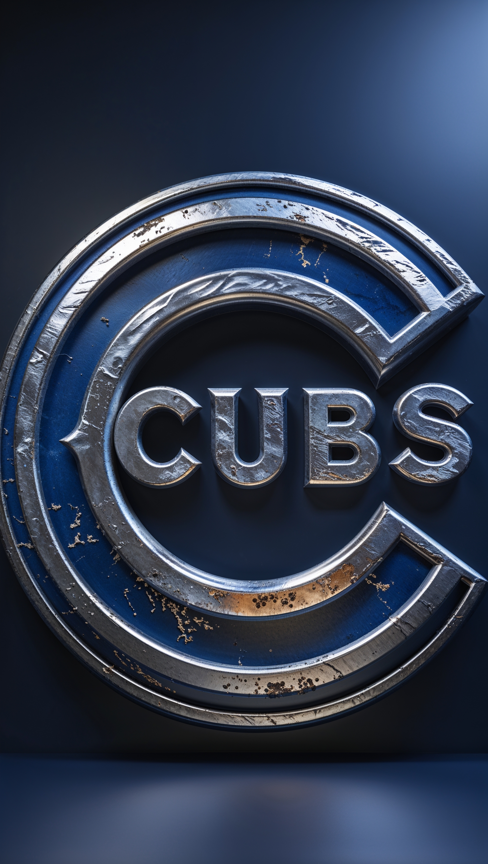 1664x2944 3D metallic Chicago Cubs logo on a dark background