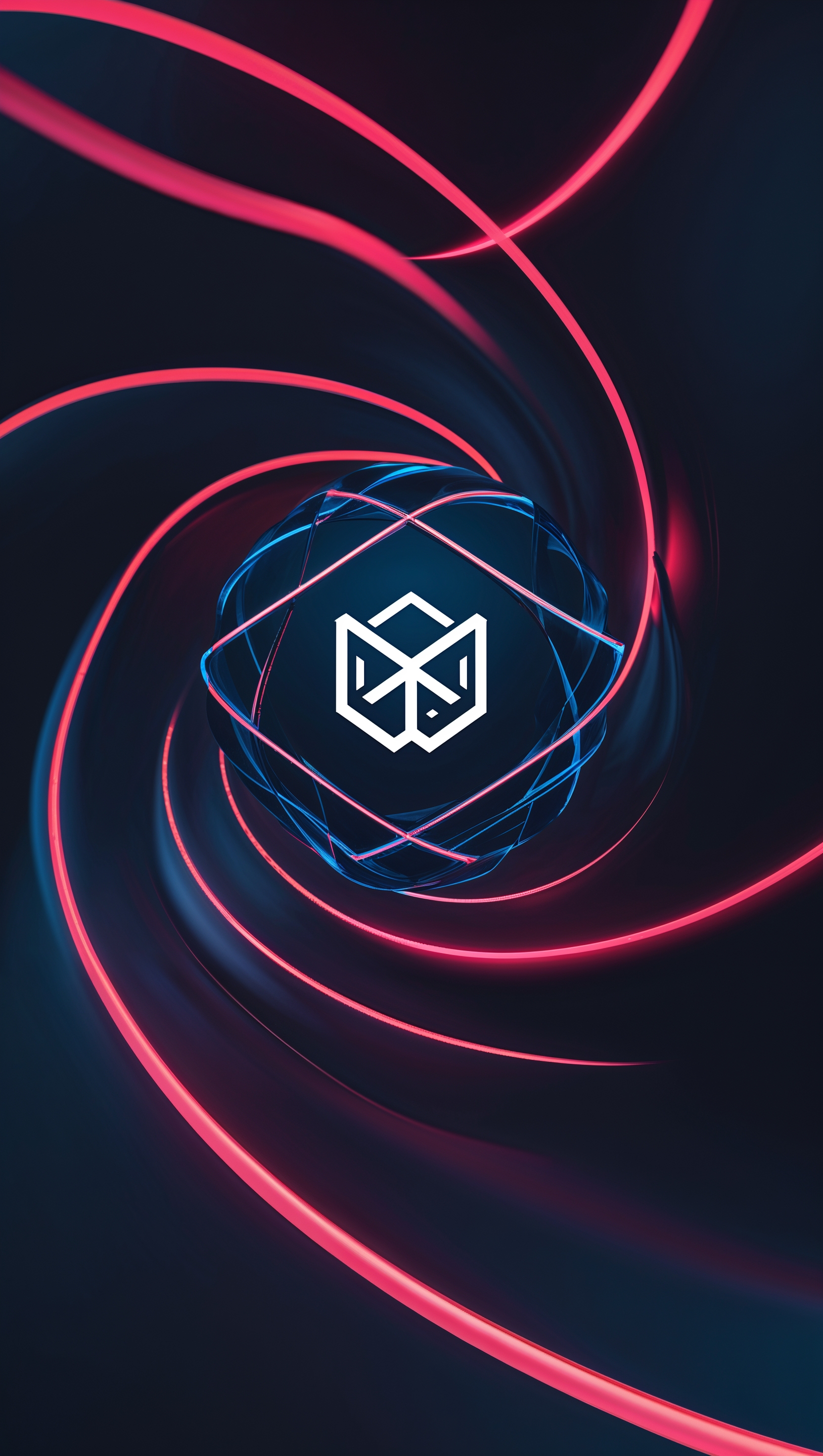 1664x2944 Dark wallpaper with glowing red and blue lines around the logo