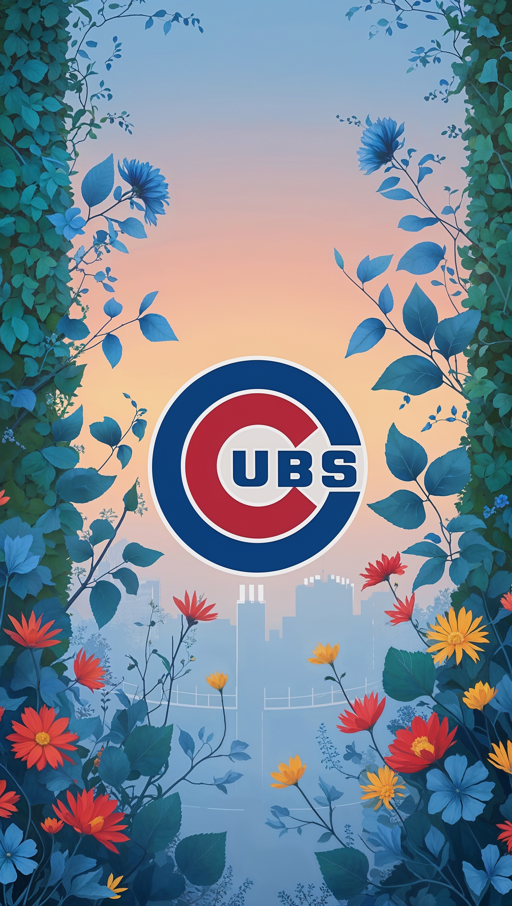 1664x2944 Nature-themed relaxing wallpaper combined with Chicago Cubs elements