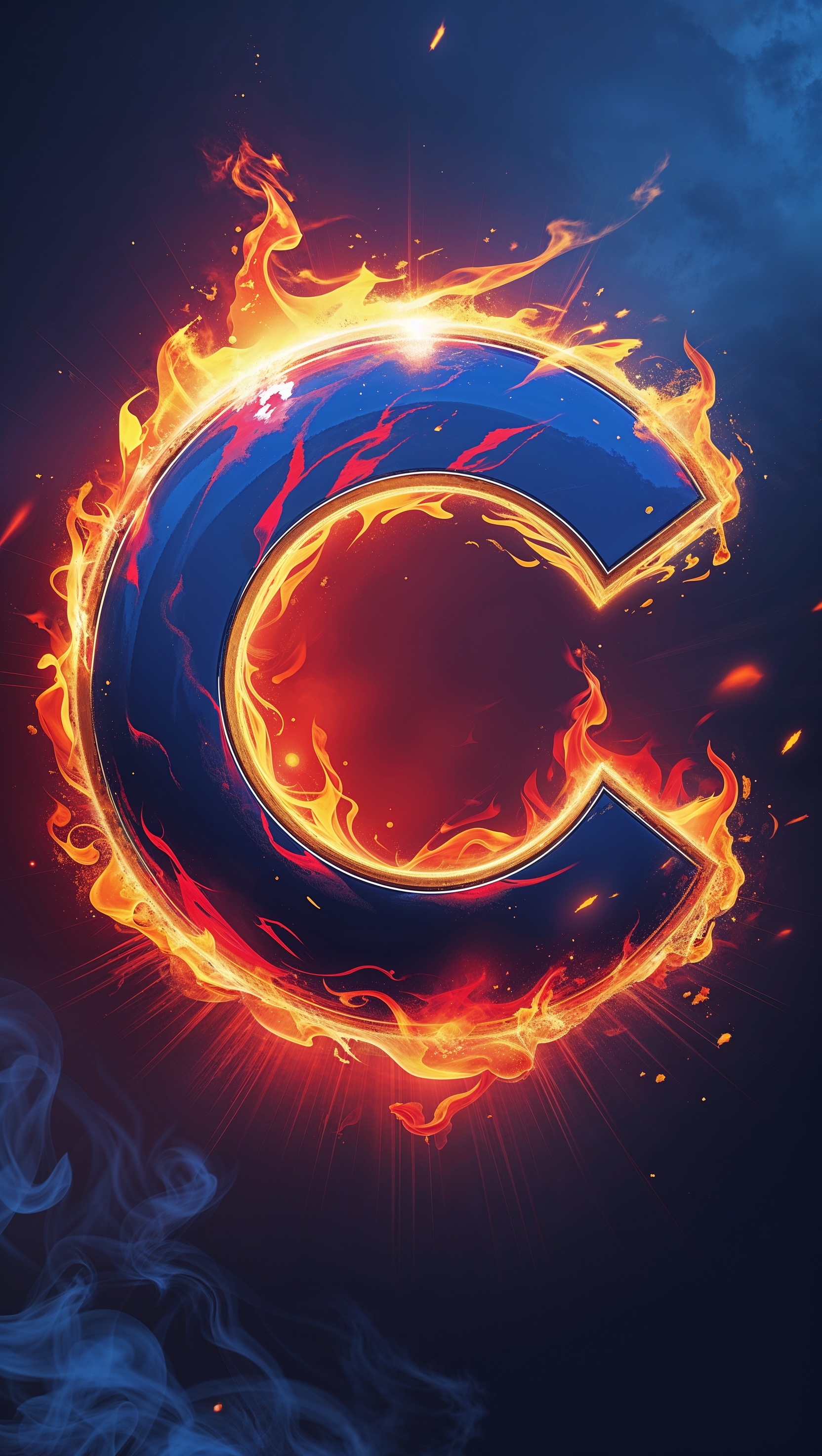 1664x2944 Chicago Cubs logo with fire and energy effects