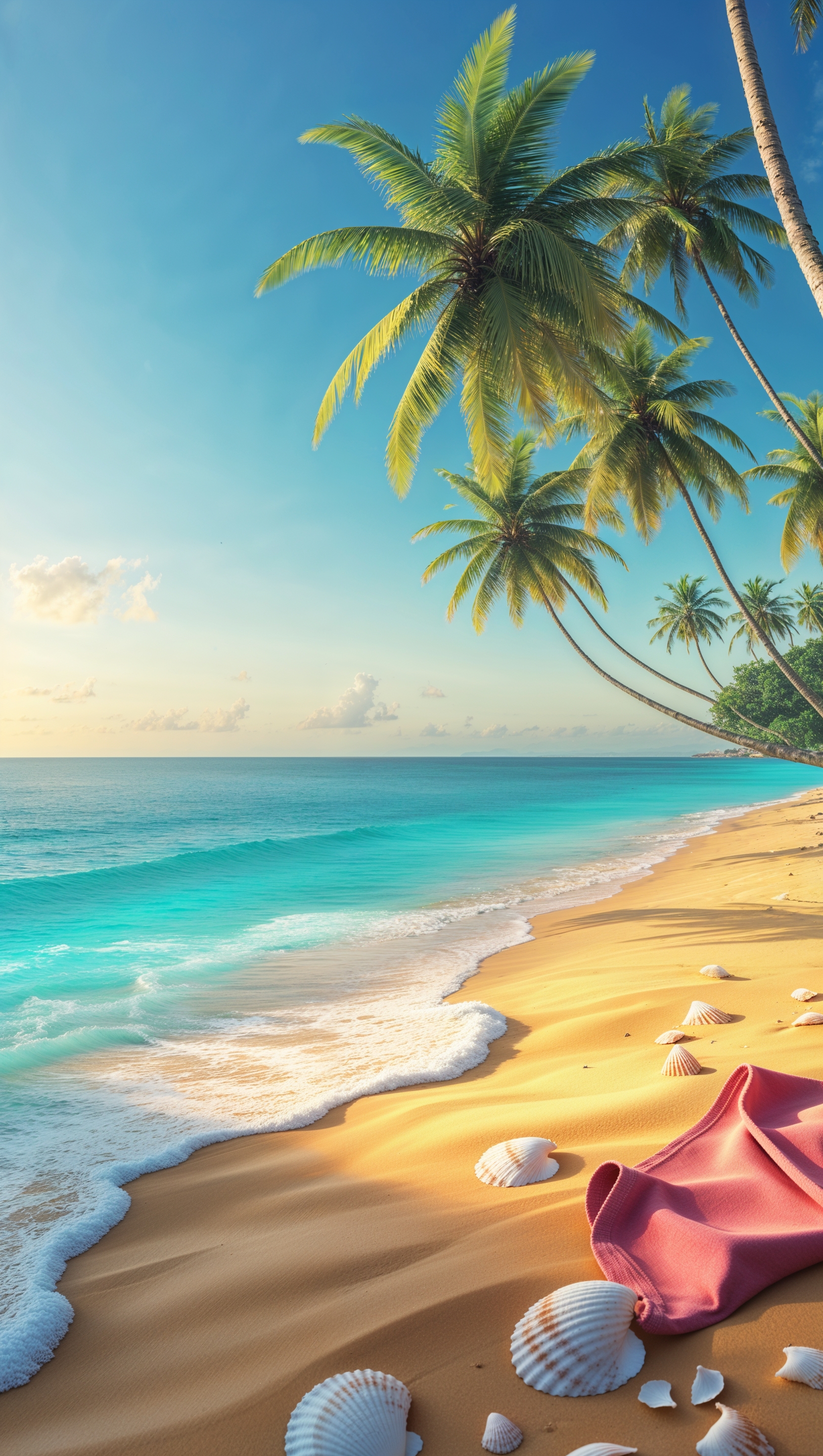 1664x2944 Tropical beach with palm trees and turquoise sea