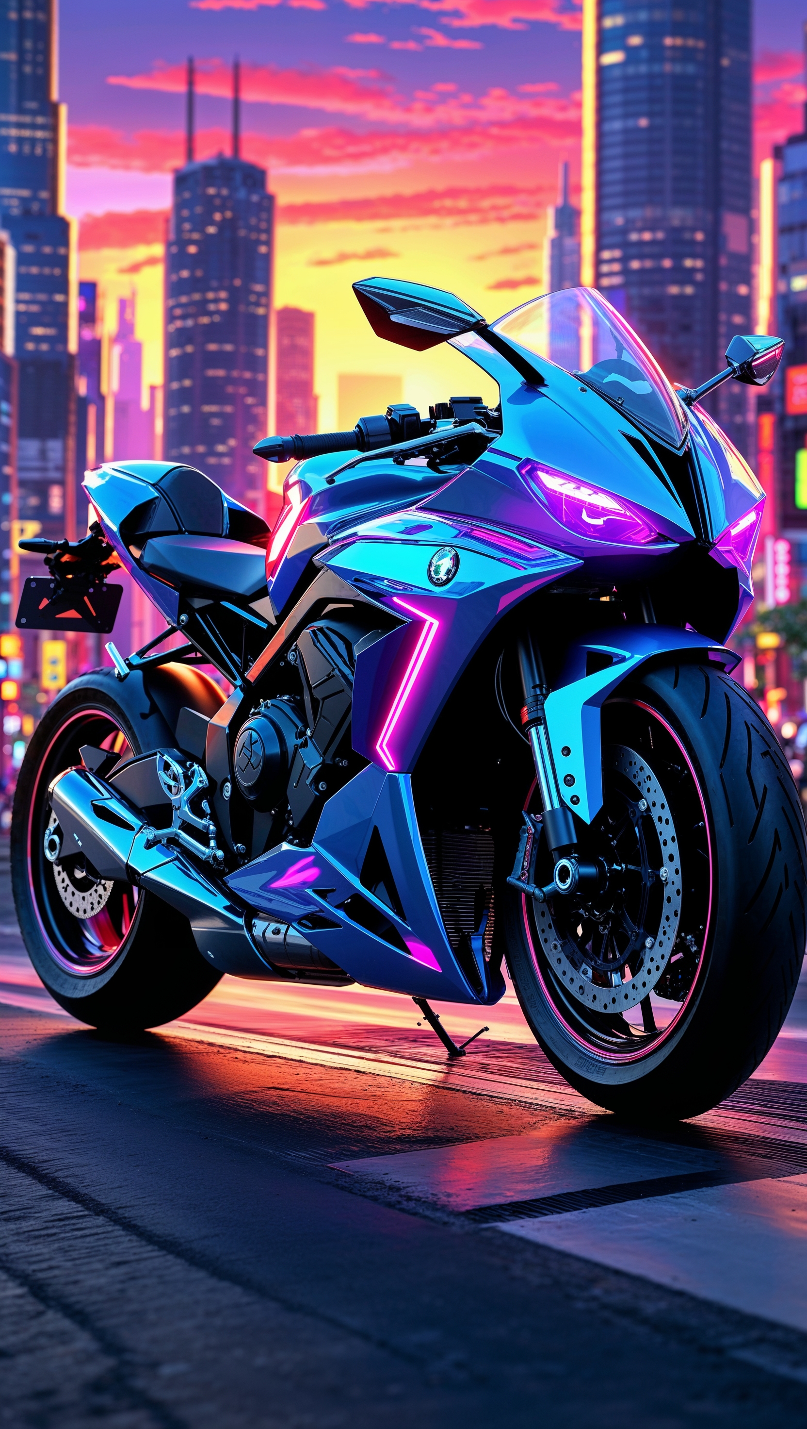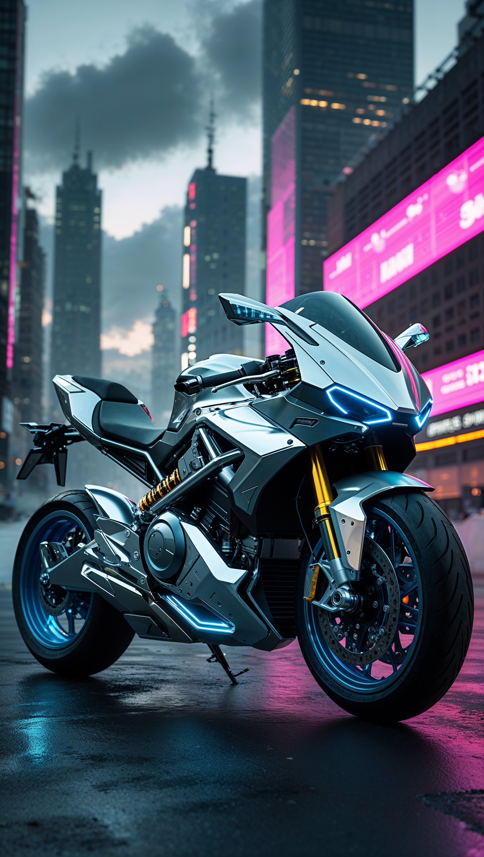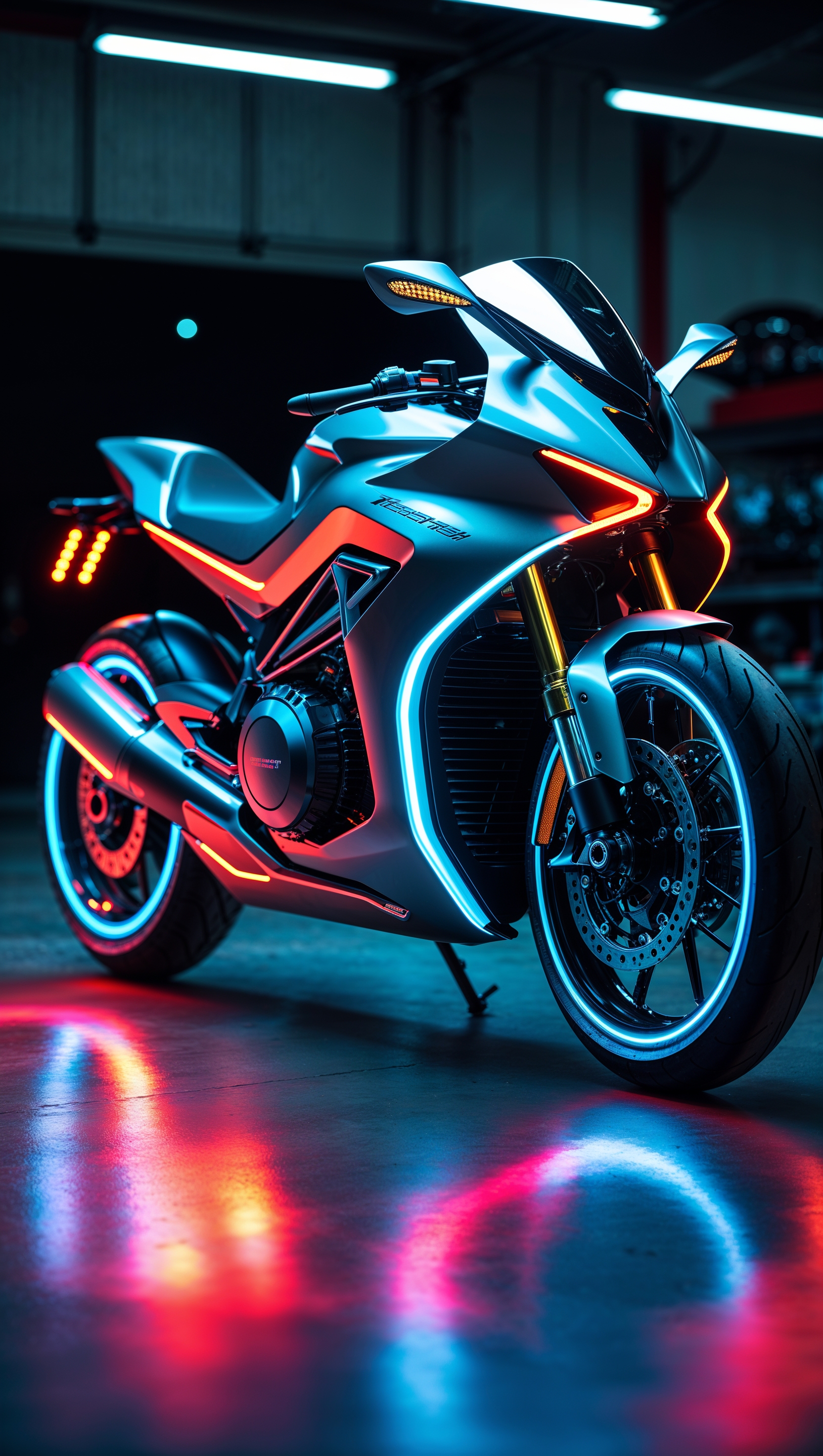 1664x2944 Futuristic motorcycle with cyberpunk design