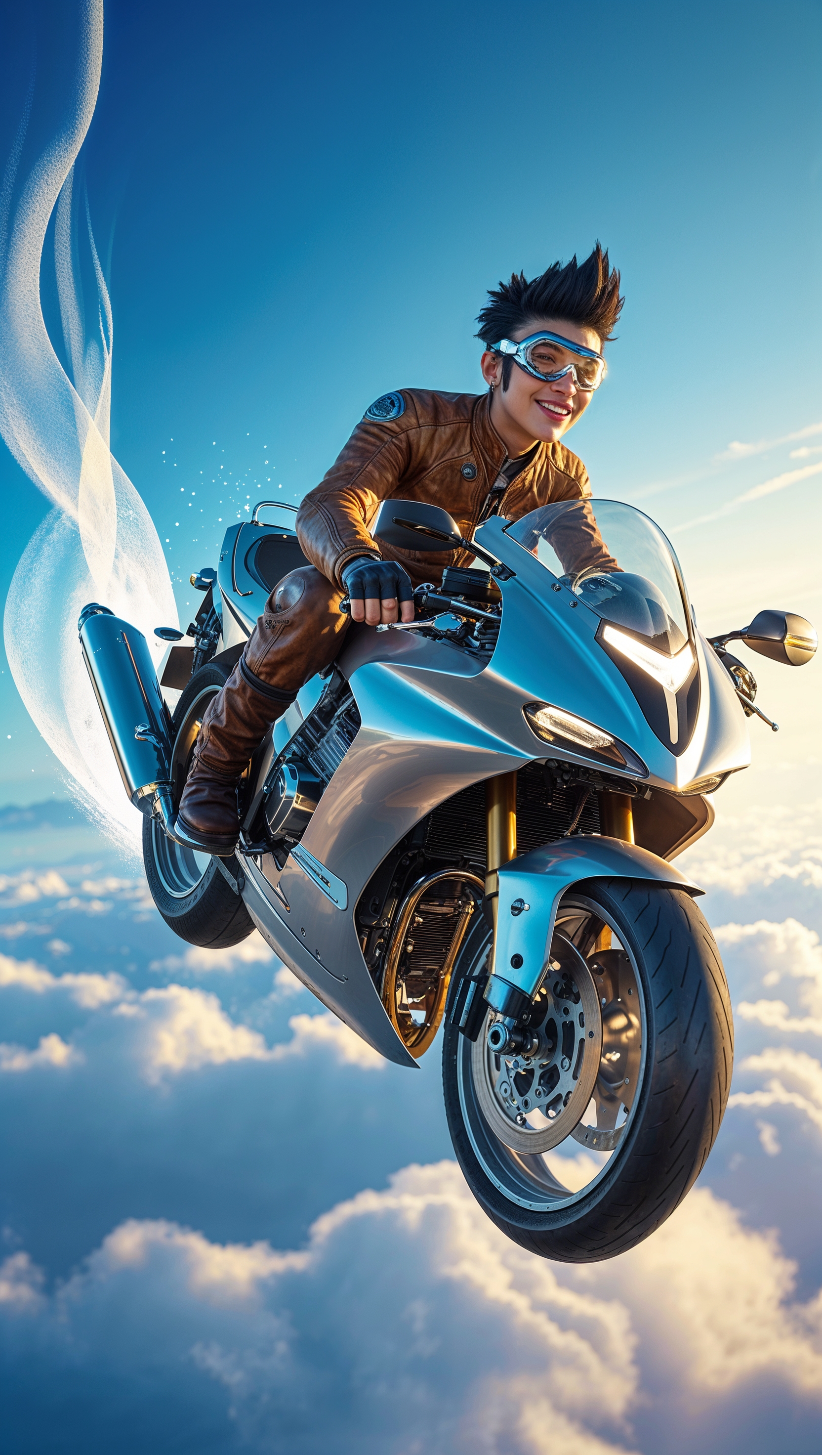 1664x2944 Fantasy wallpaper of a flying motorcycle in the sky