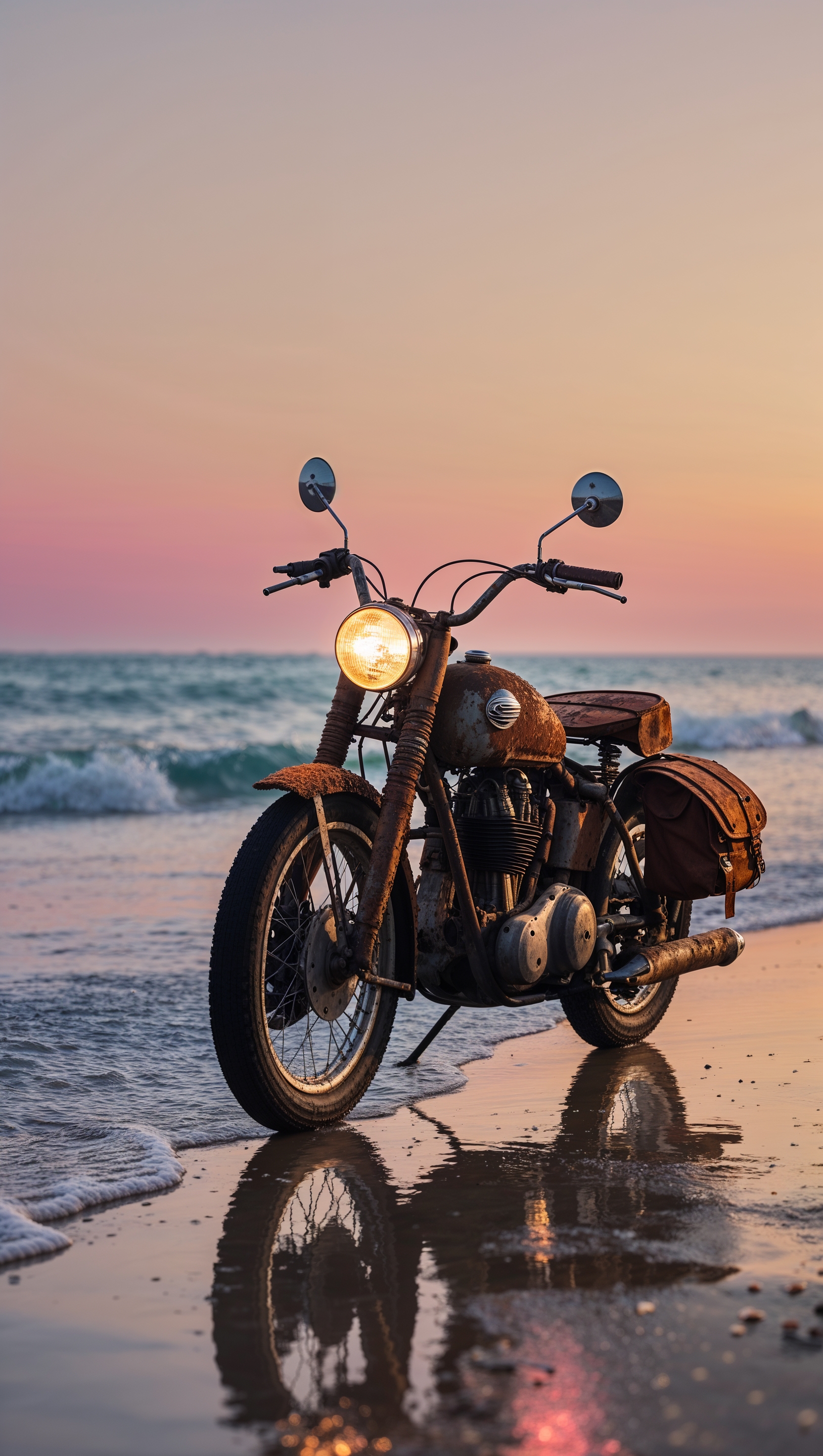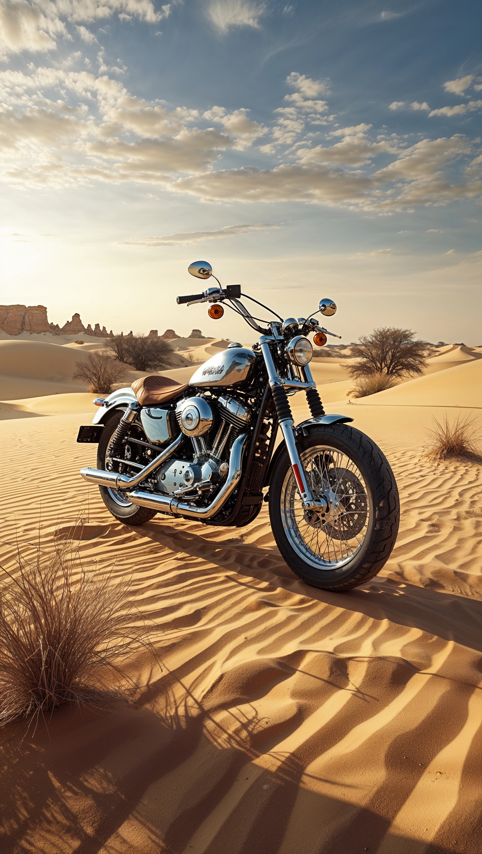 1664x2944 Motorcycle in the heart of the desert with golden sands