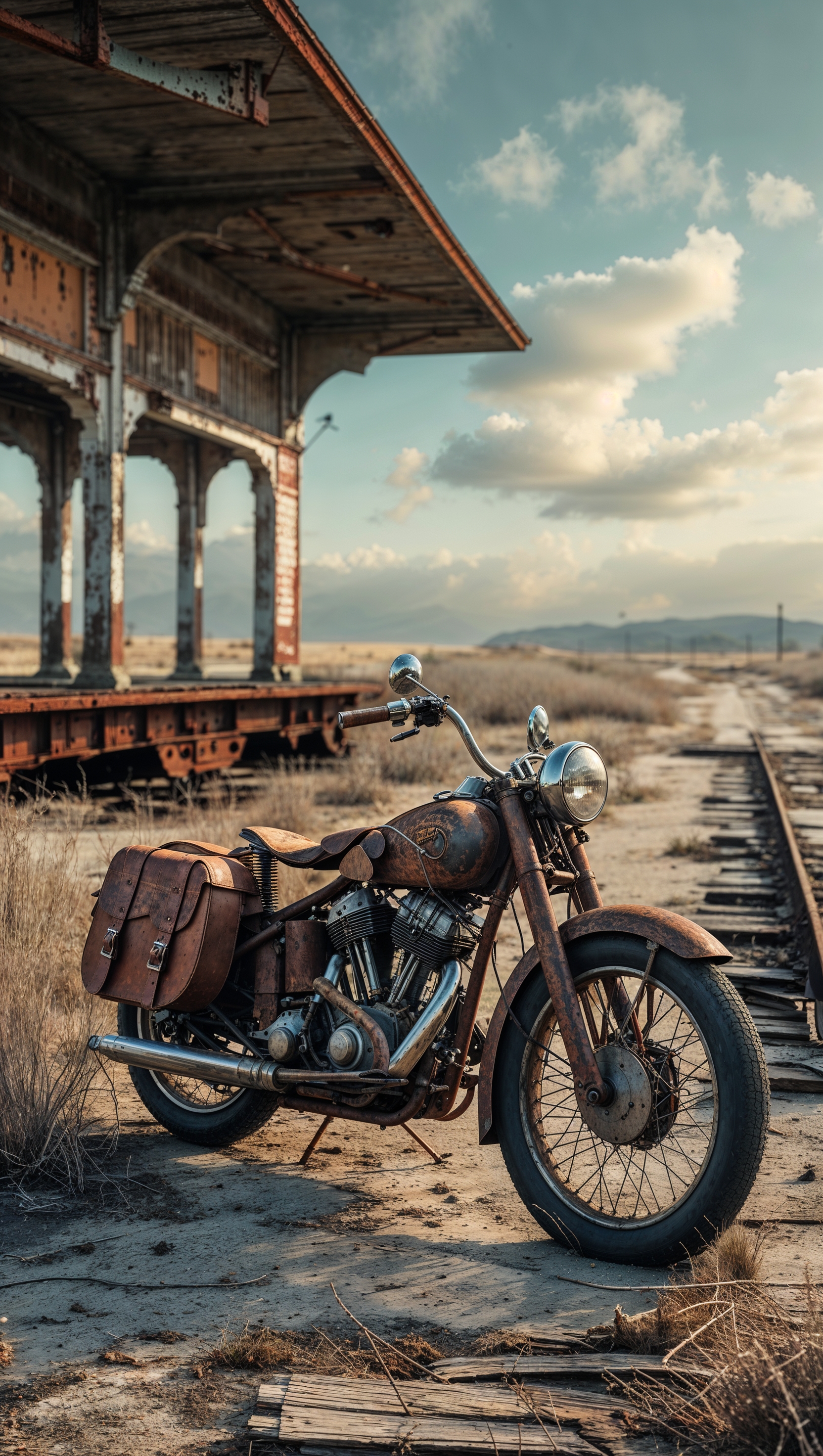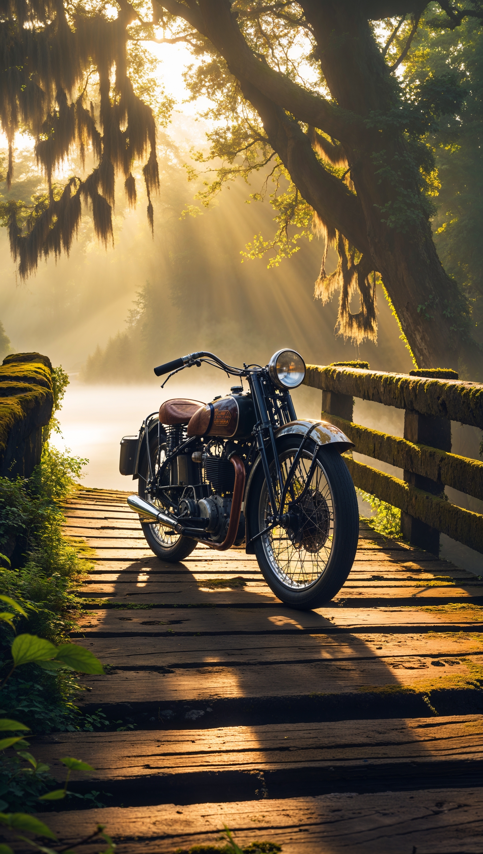 1664x2944 Motorcycle on an old bridge with natural lighting