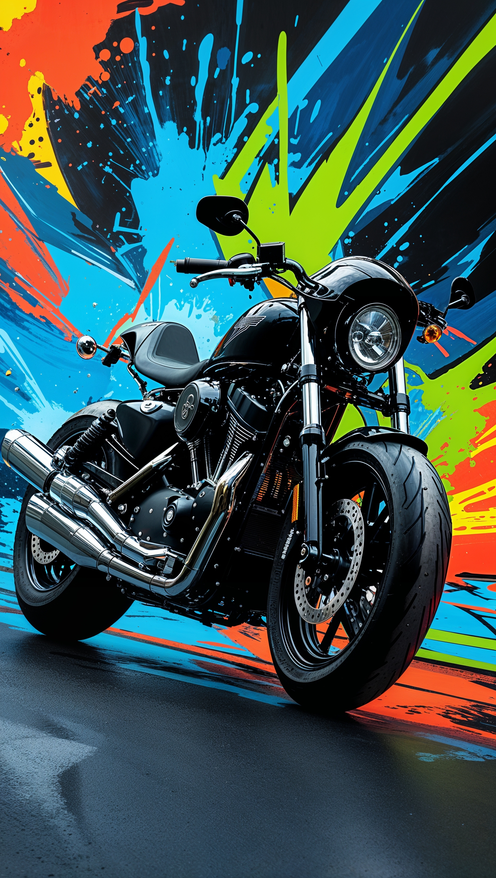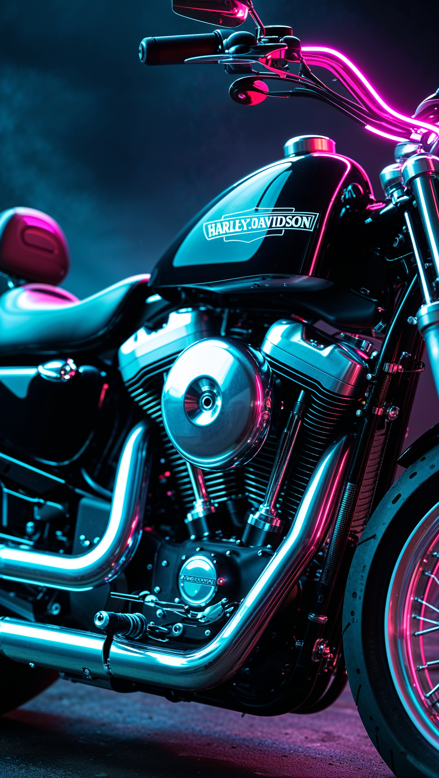 1664x2944 Close-up of a Harley-Davidson motorcycle with neon lights