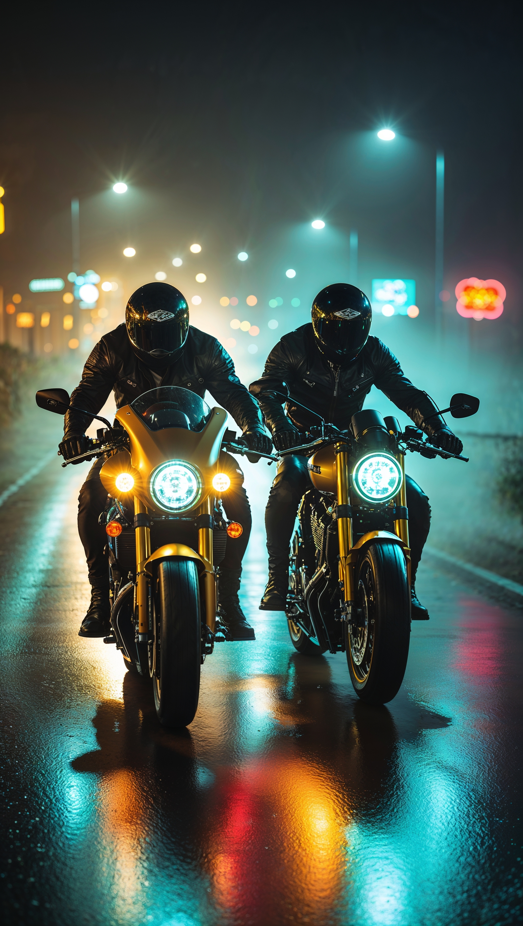 1664x2944 Two motorcycles racing at night with dramatic lighting