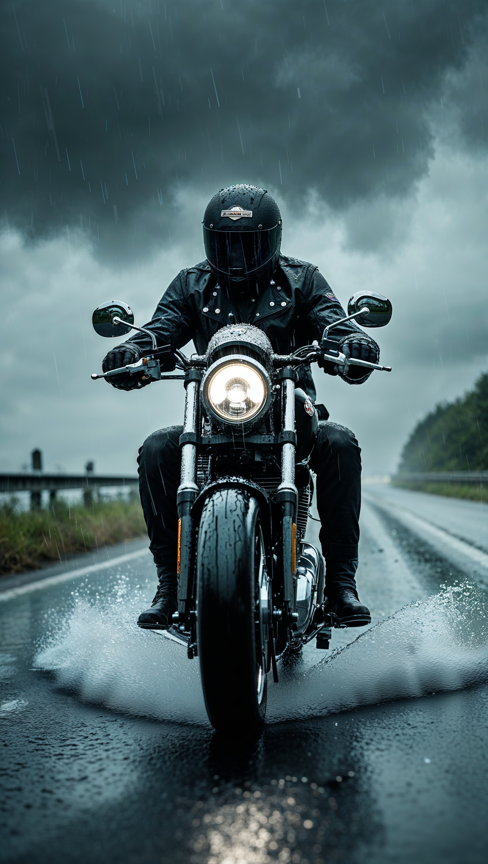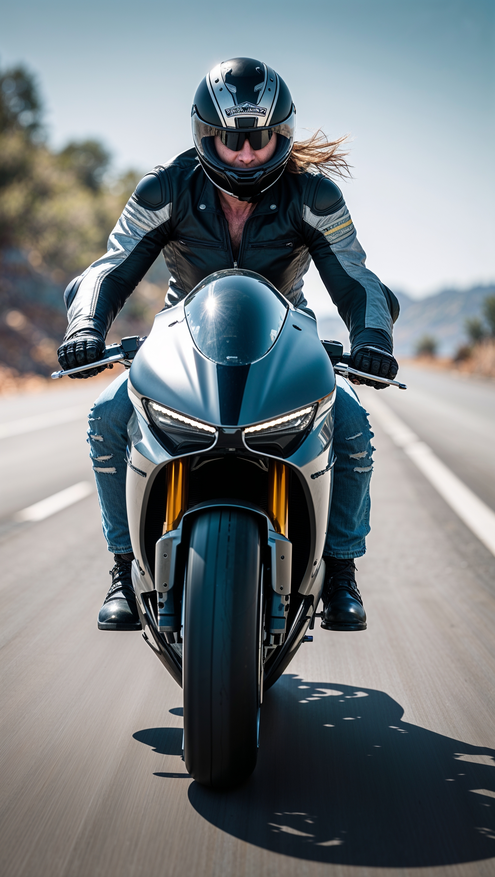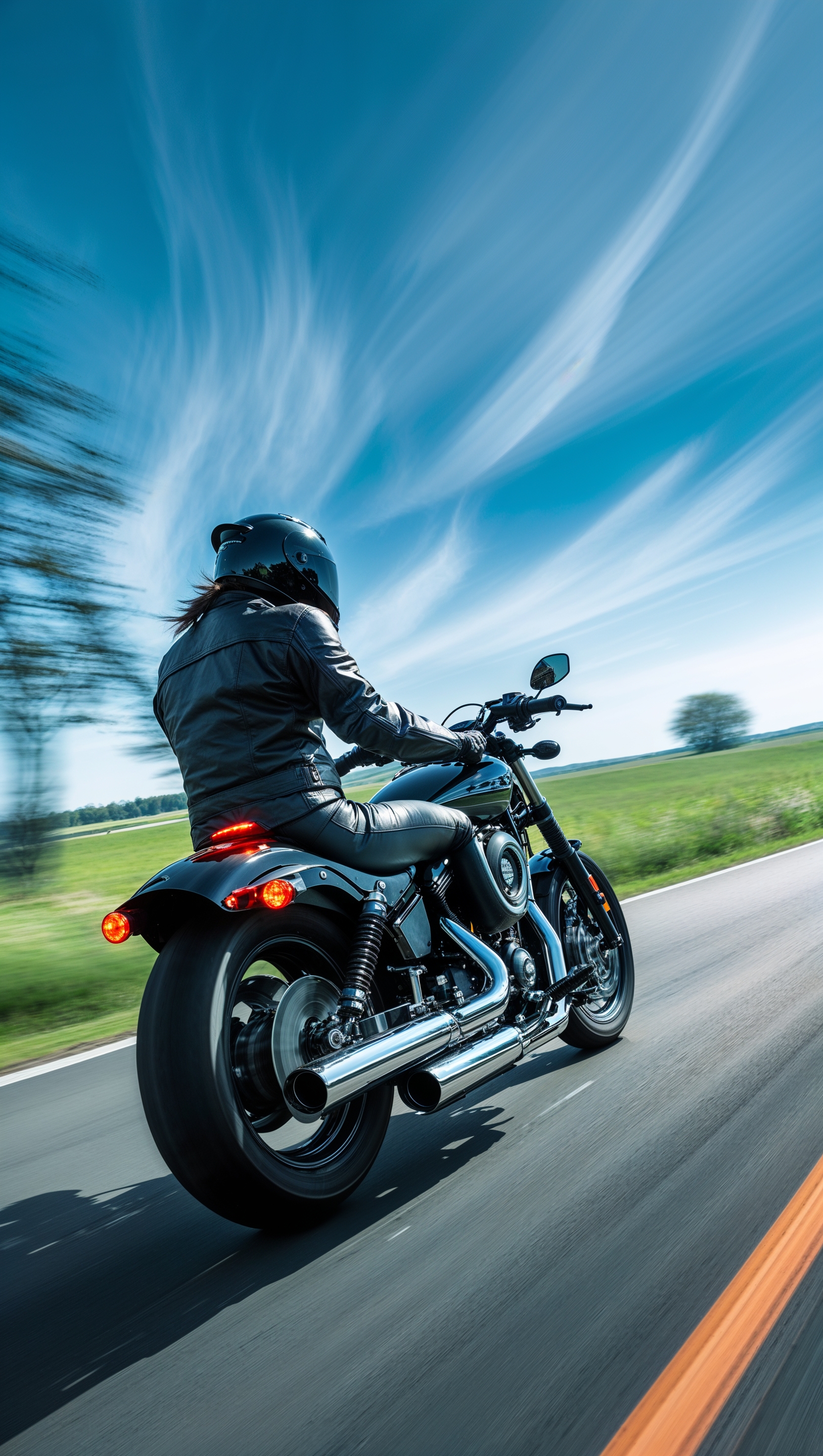 1664x2944 A motorcycle speeding on a highway with motion blur effect