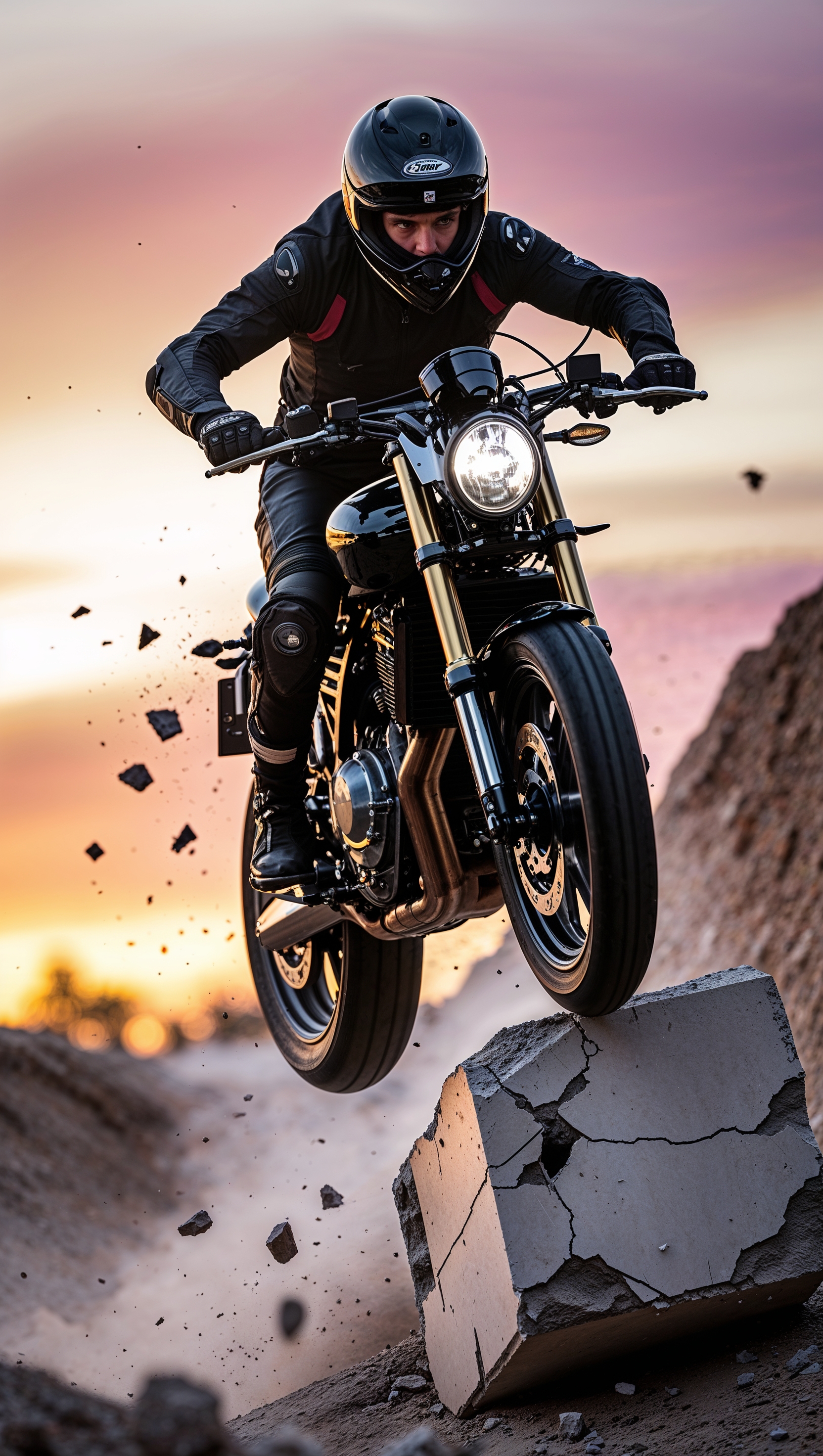 1664x2944 Motorcycle jumping over an obstacle in an action scene