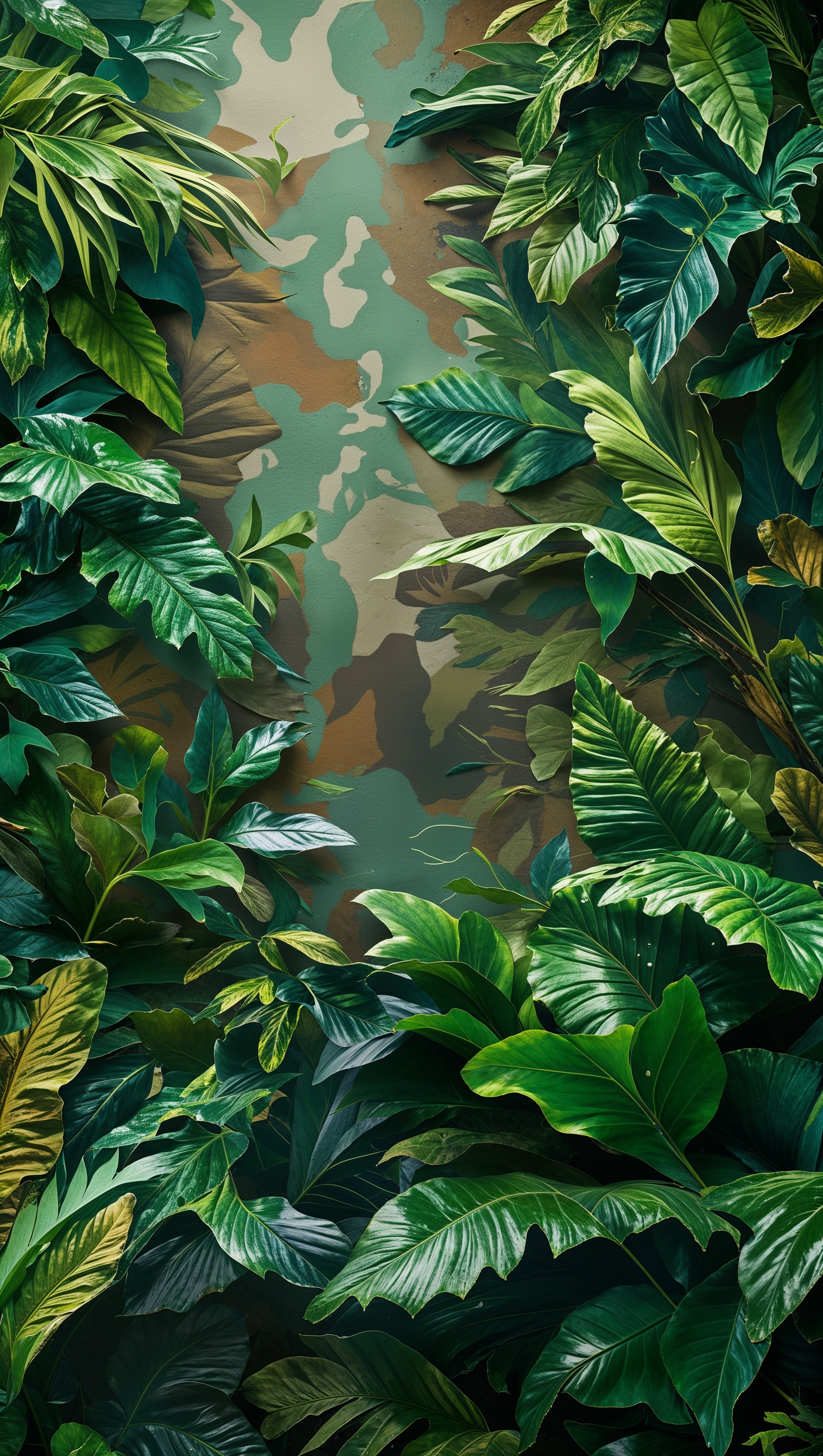 1664x2944 Jungle camo texture with leaf details, perfect for iPhone wallpaper