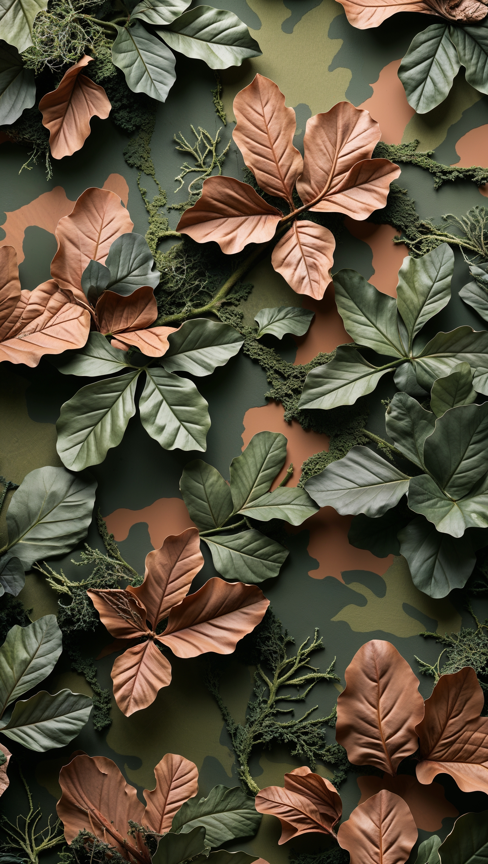 1664x2944 Camo pattern inspired by leaves and branches, natural iPhone wallpaper