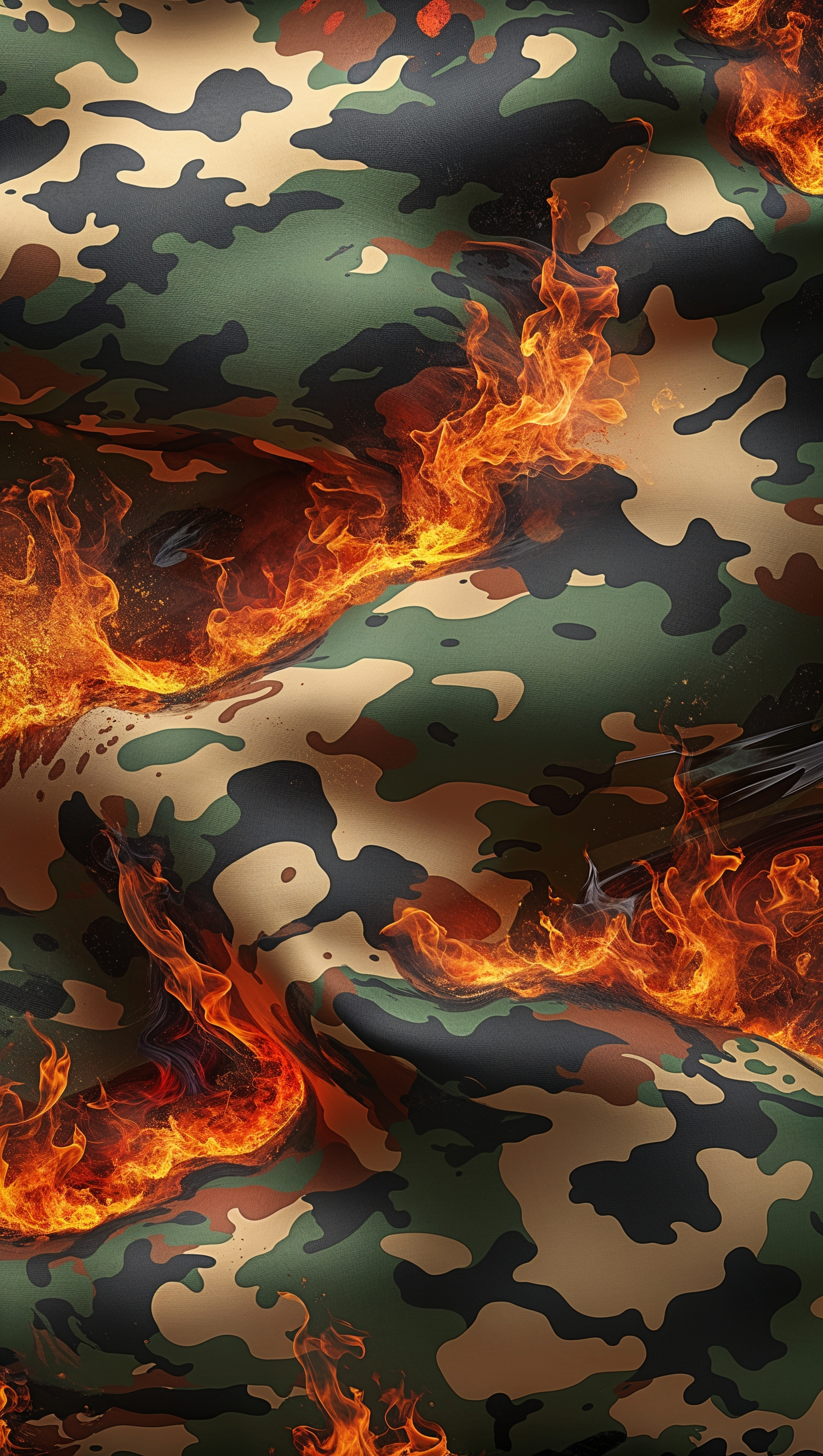 1664x2944 Camouflage pattern mixed with fire textures, fiery iPhone background