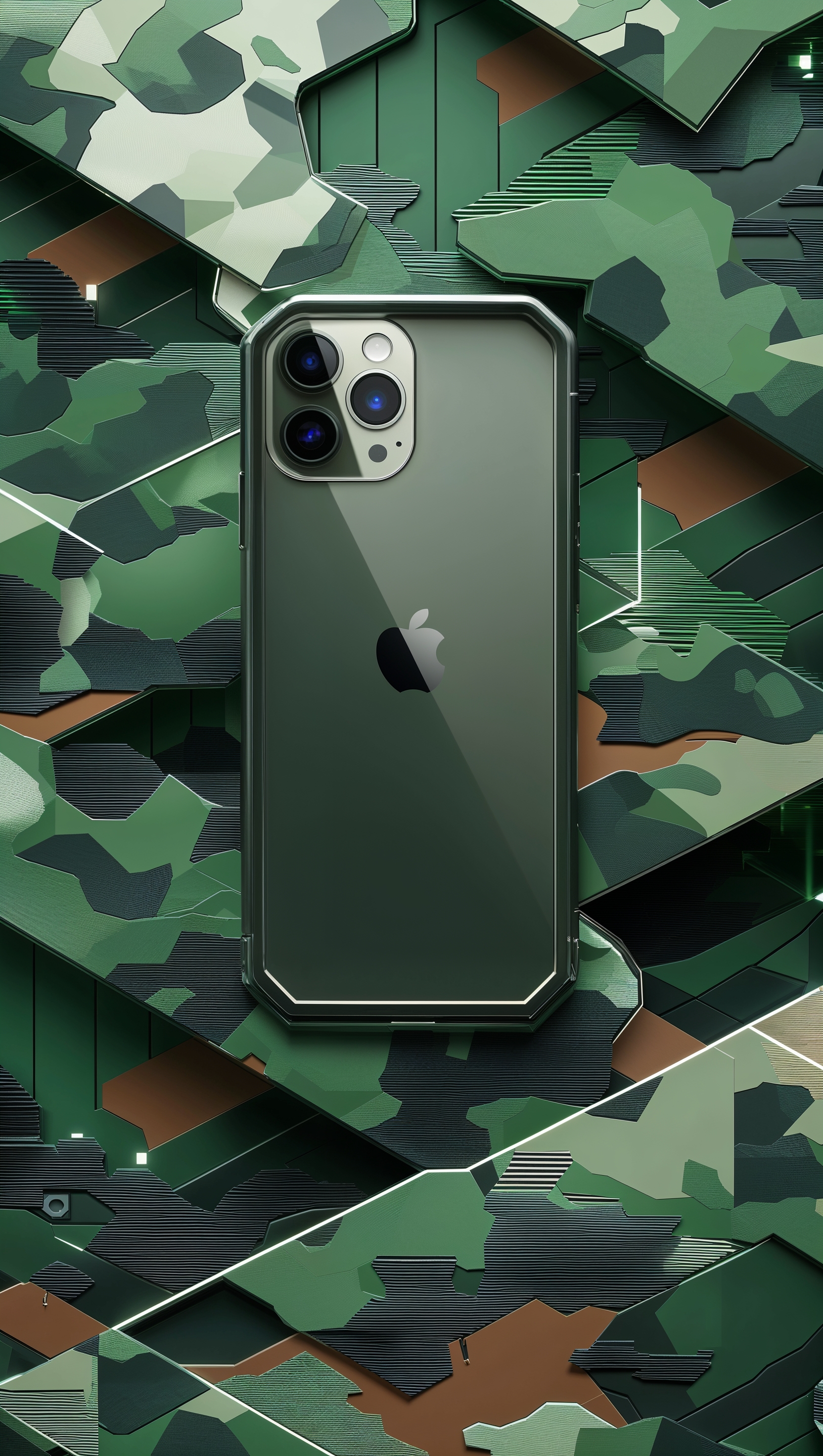 1664x2944 Digital forest camo with sharp edges, clean iPhone design