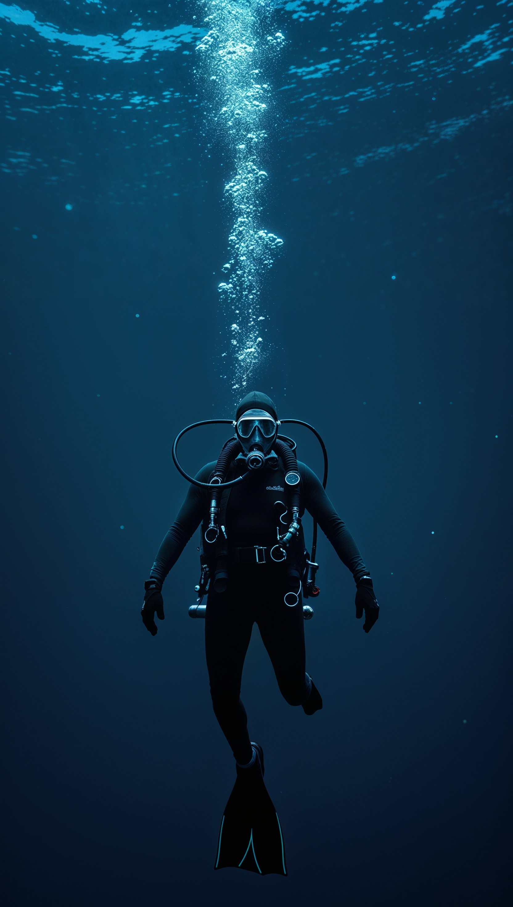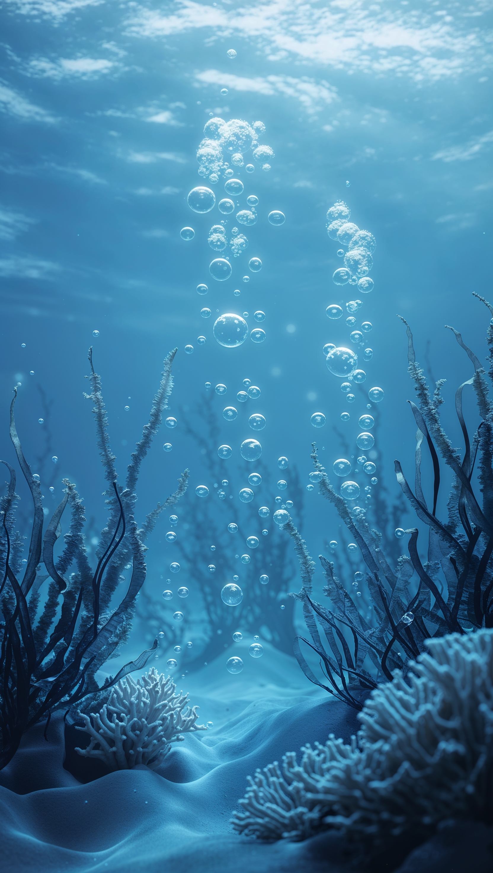 1664x2944 A calm underwater scene with soft blue light and bubbles