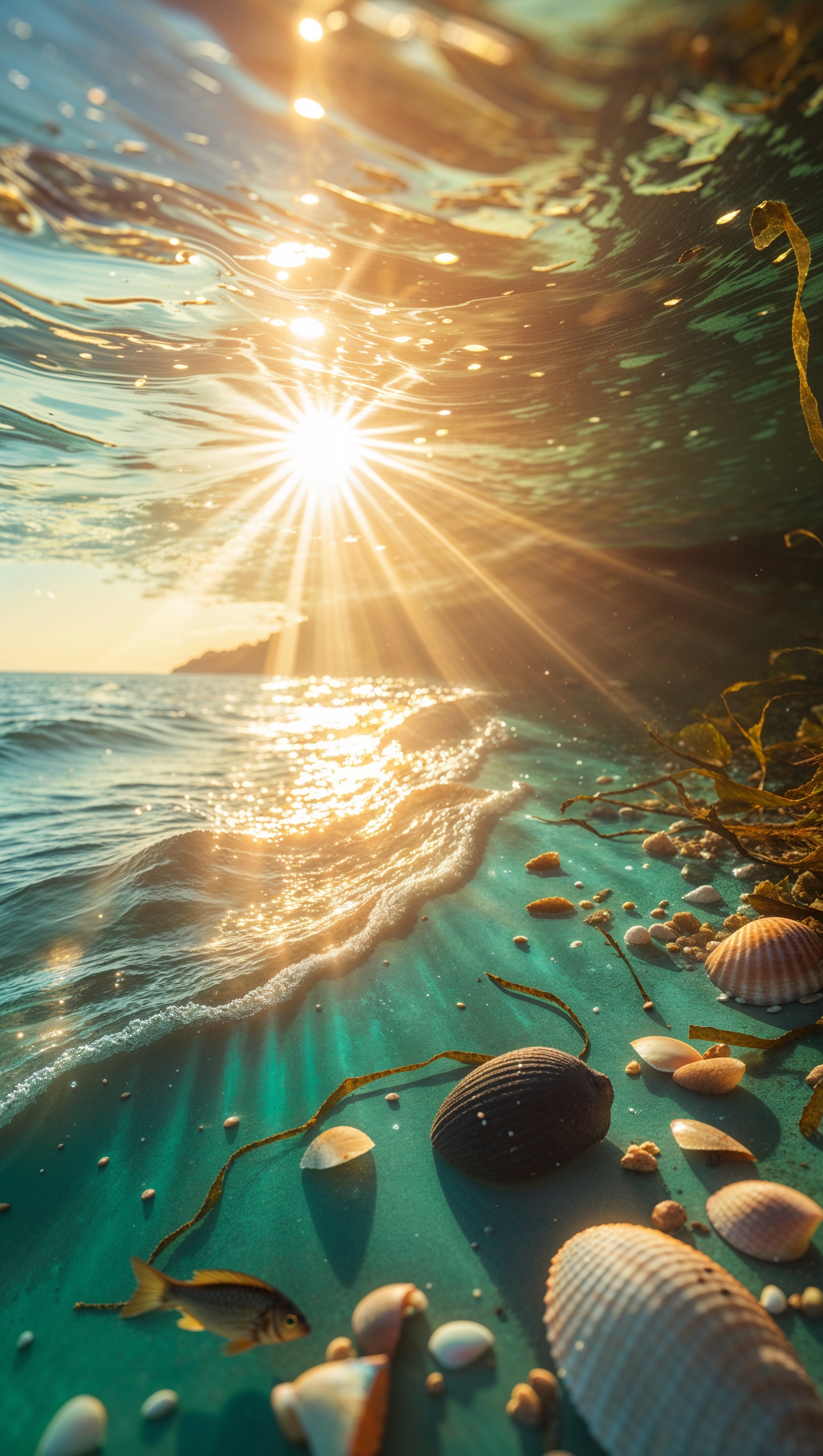 1664x2944 Peaceful horizontal view of the seafloor with sand and shells