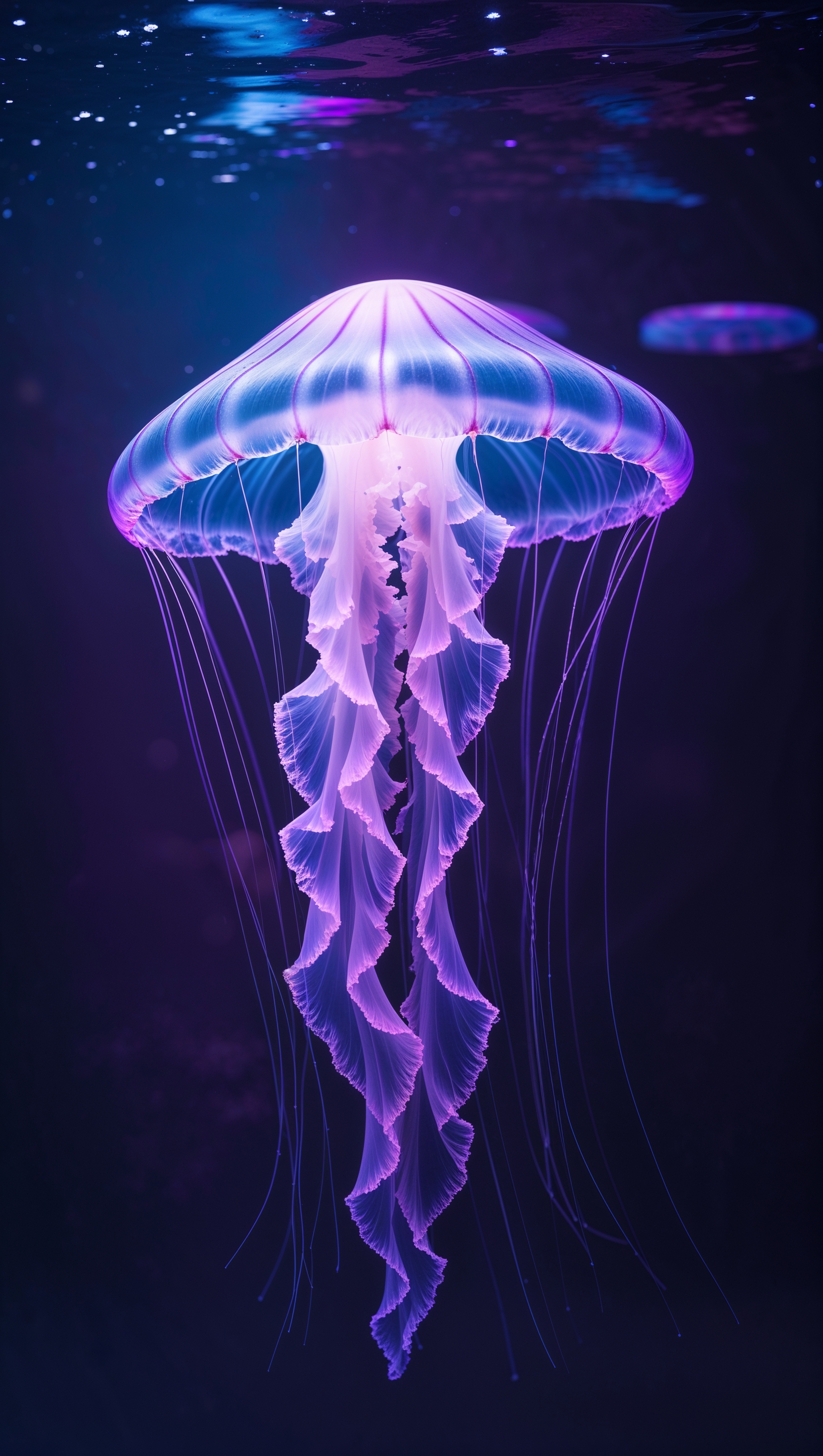 1664x2944 Artistic photo of jellyfish with purple and blue lights