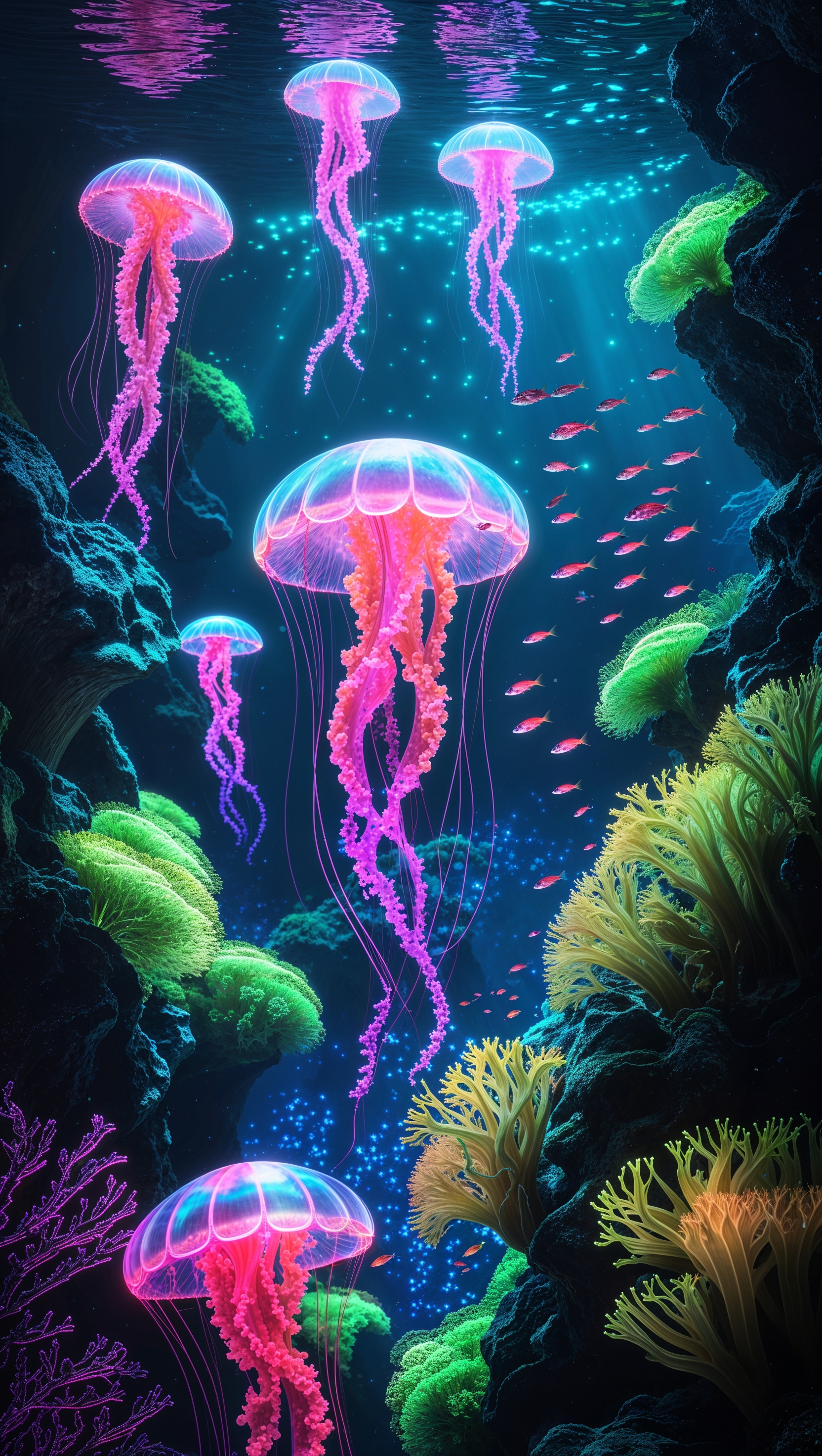 1664x2944 Fantasy-inspired underwater world with neon colors