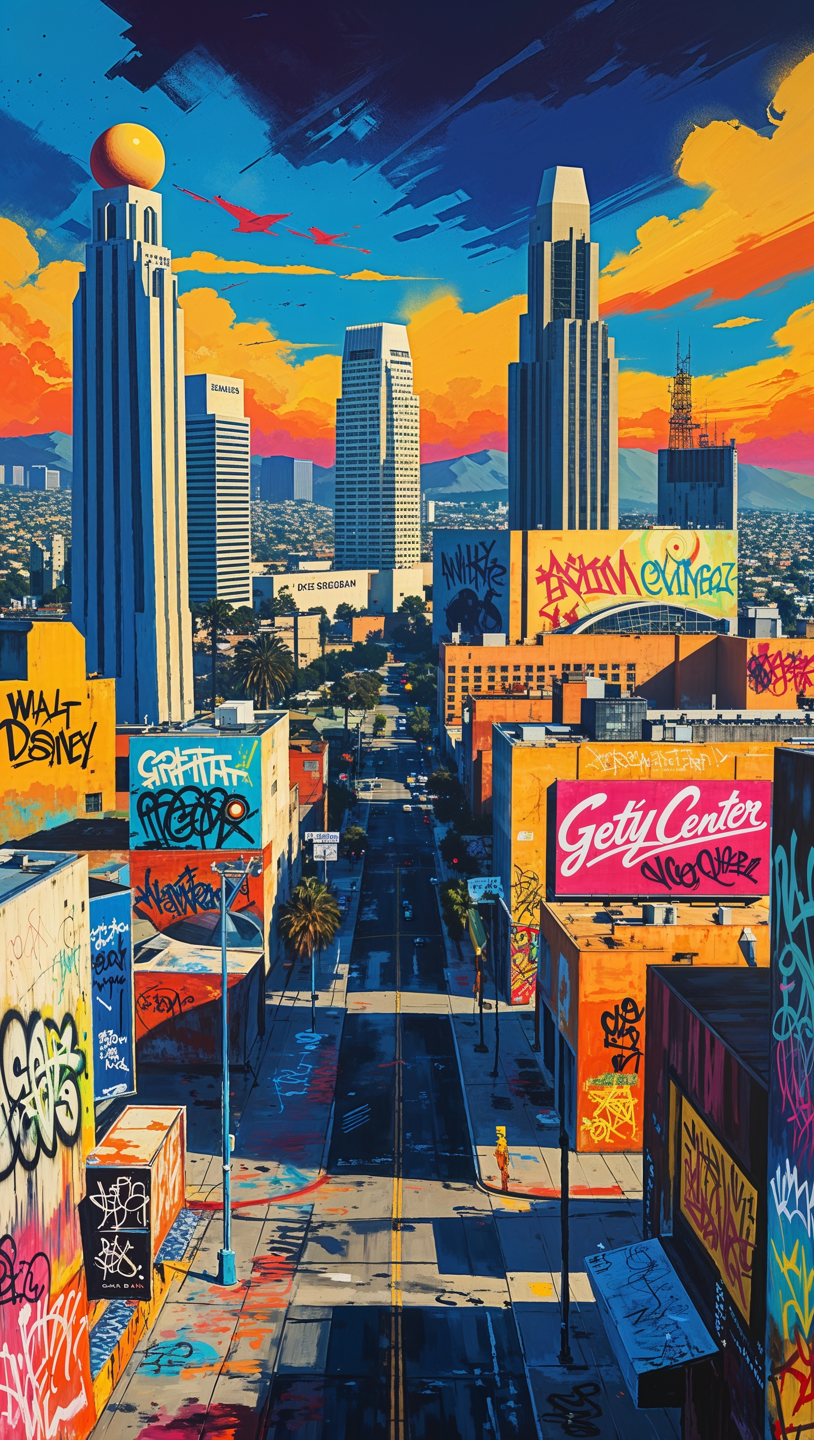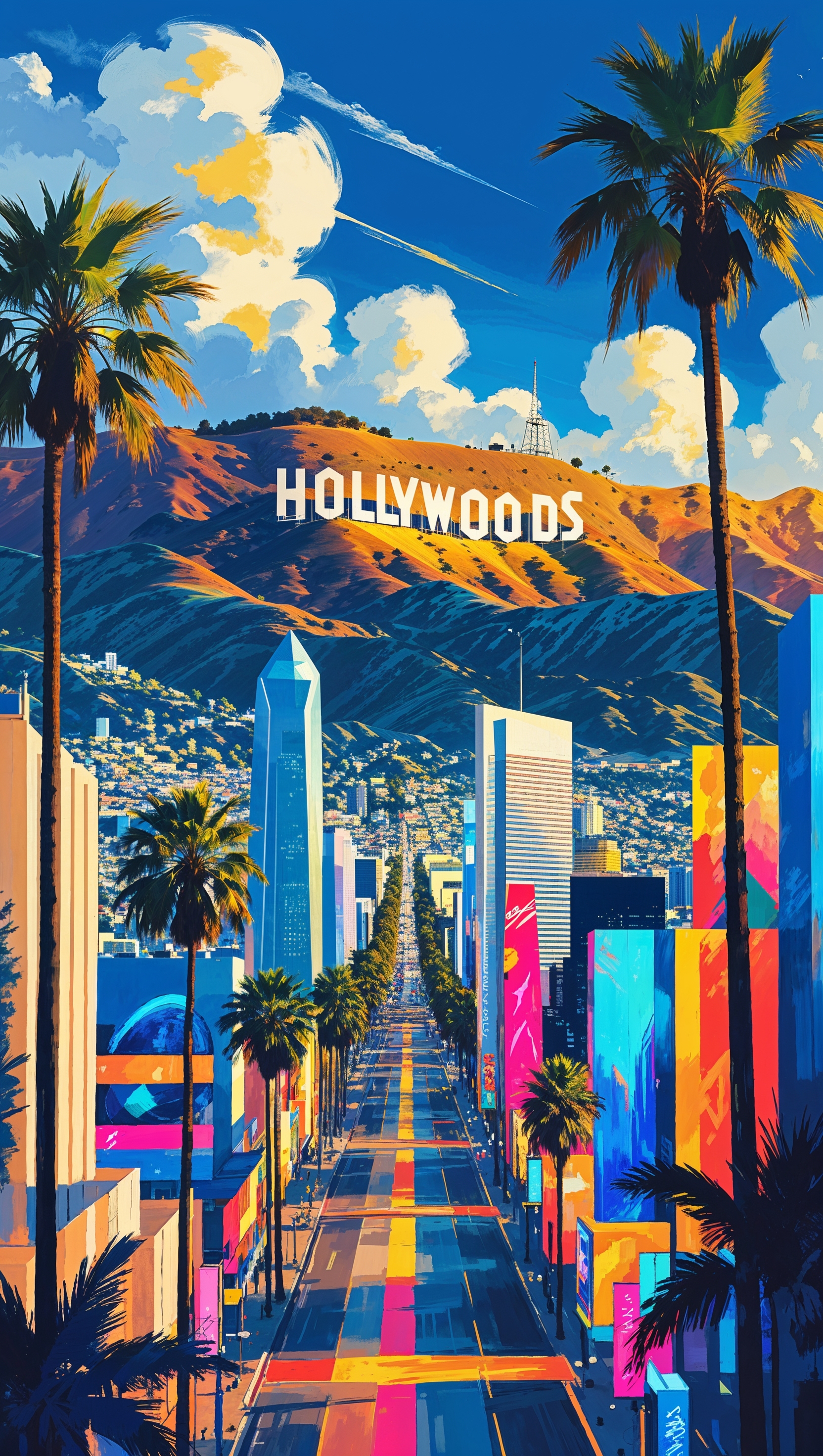 1664x2944 Los Angeles in digital painting style