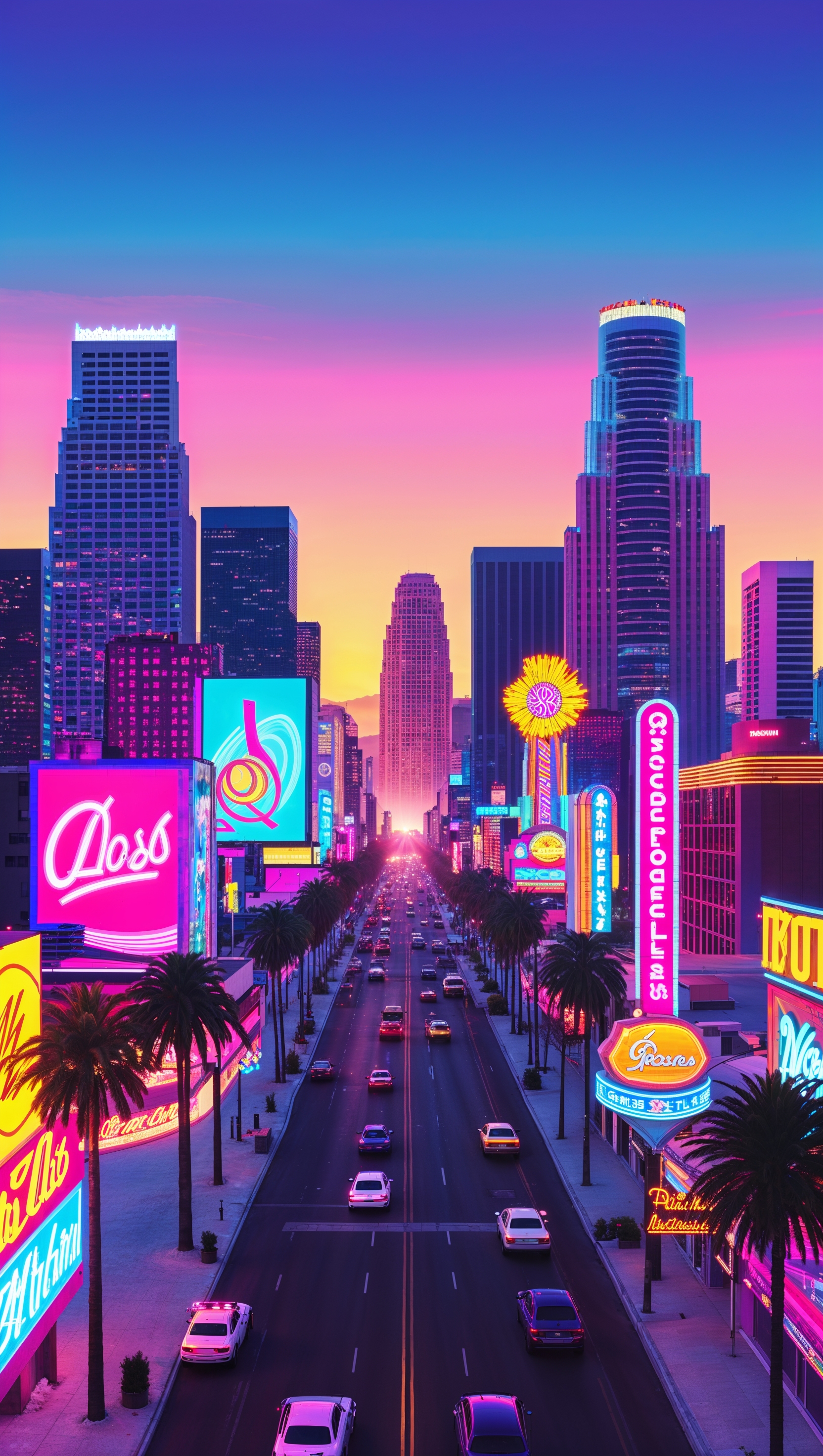 1664x2944 Los Angeles in cyberpunk art style