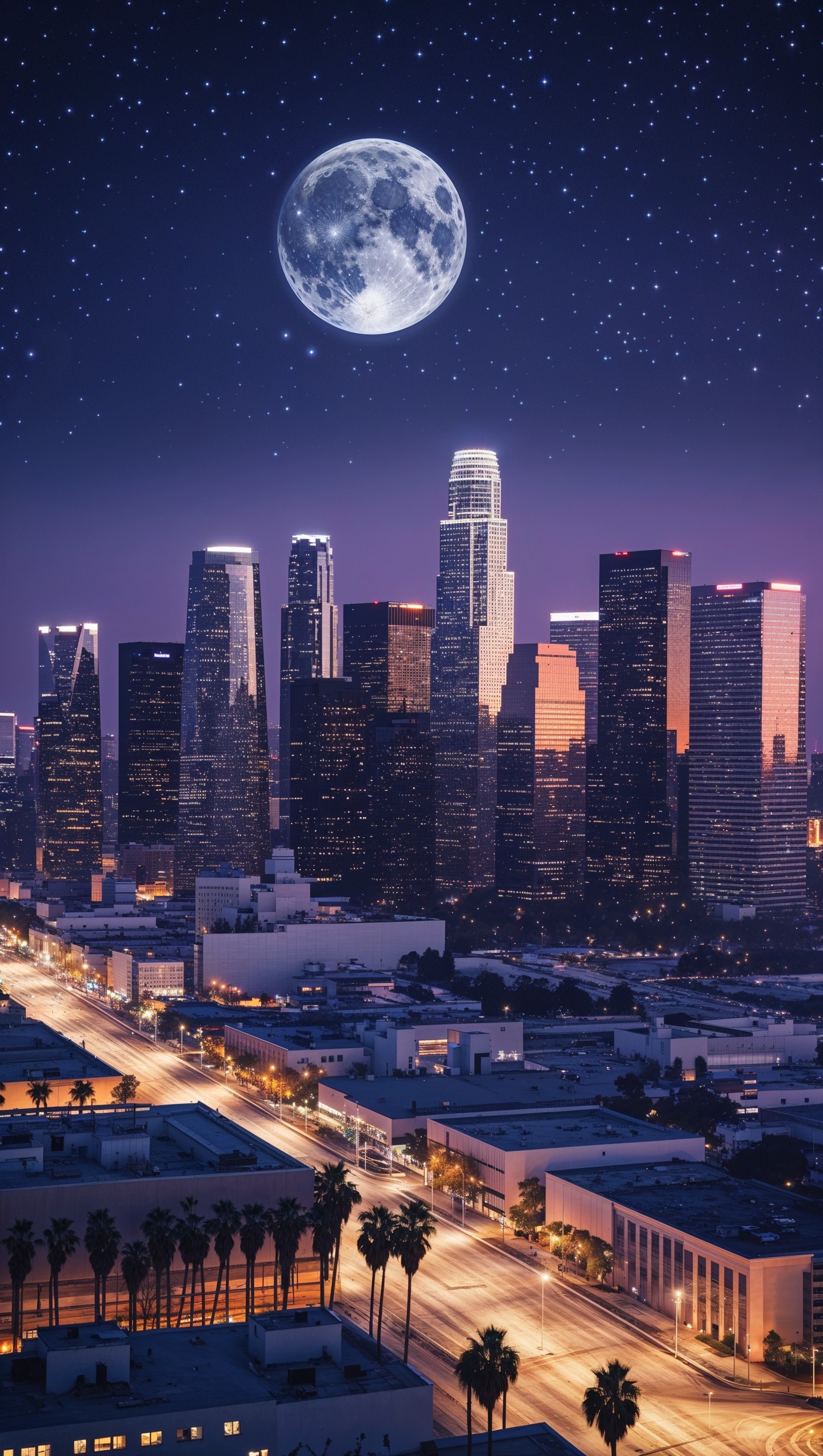 1664x2944 Los Angeles skyscrapers under moonlight