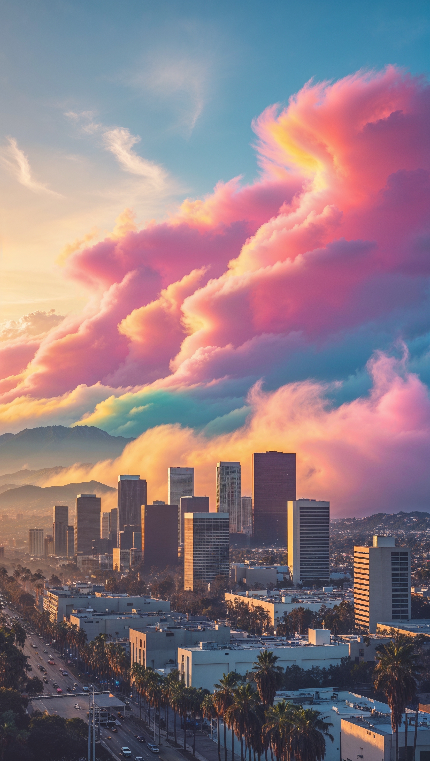 1664x2944 Los Angeles covered in colorful clouds