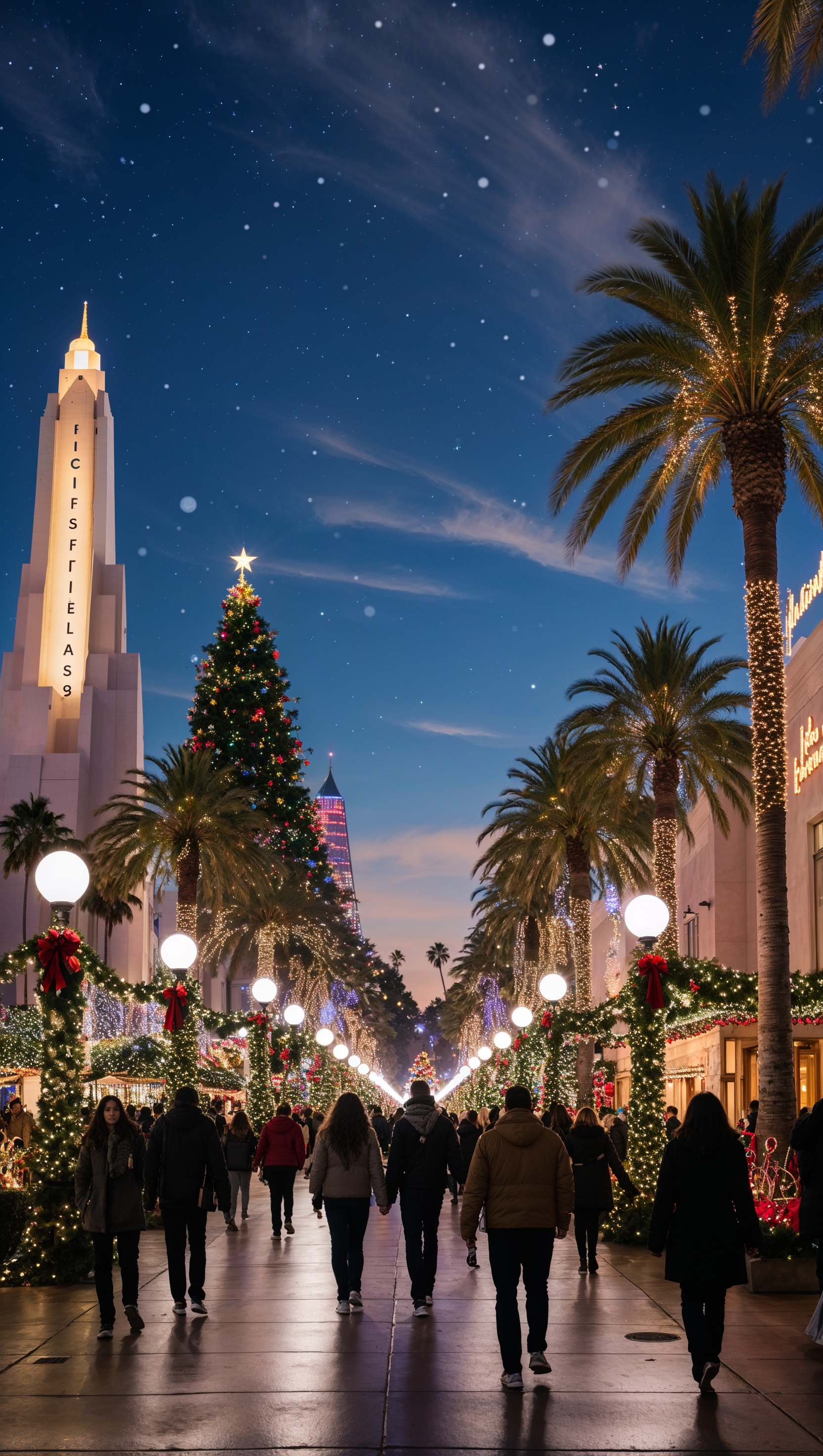1664x2944 Los Angeles at Christmas night with decorations