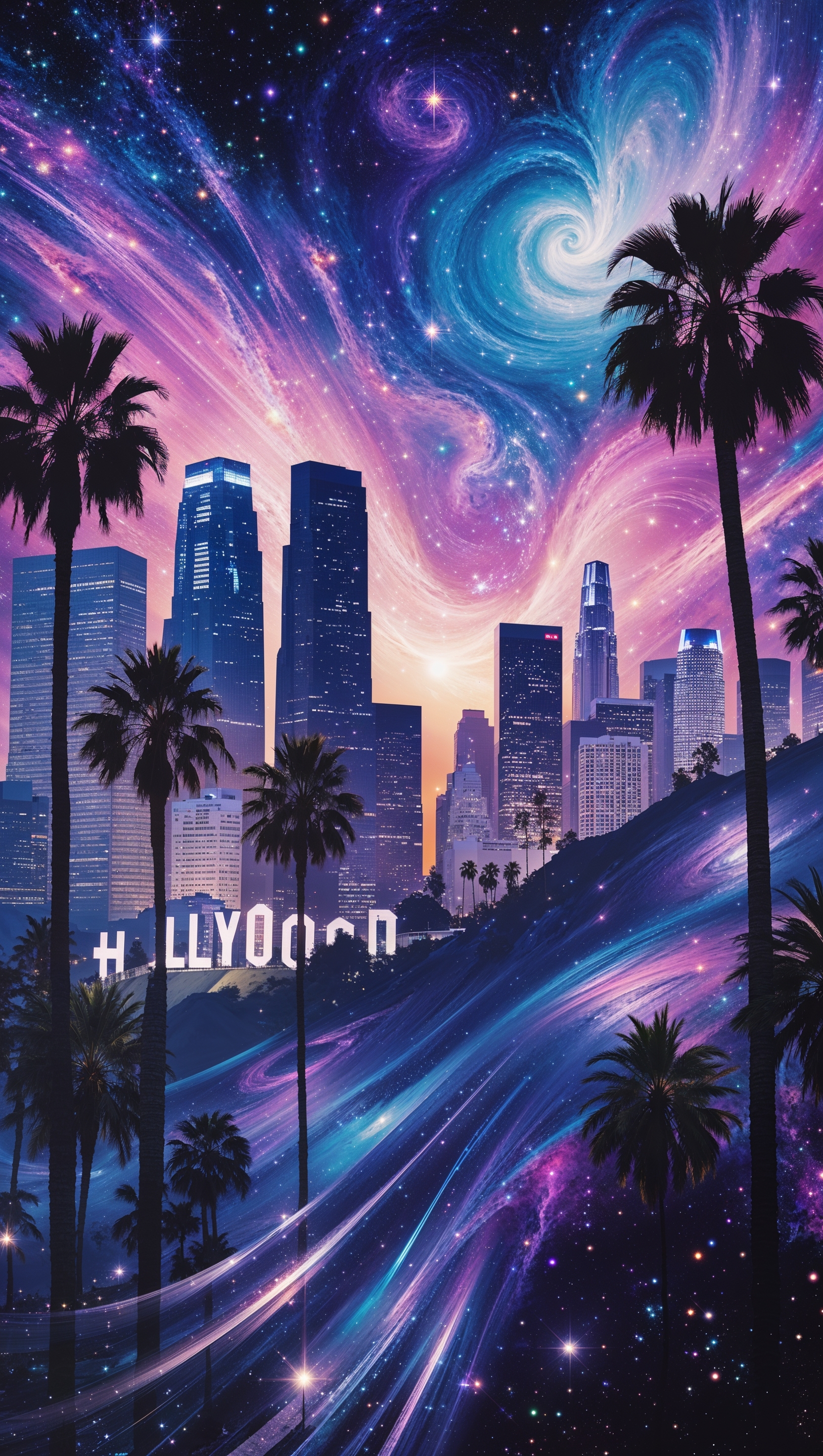 1664x2944 Los Angeles merged with galaxies