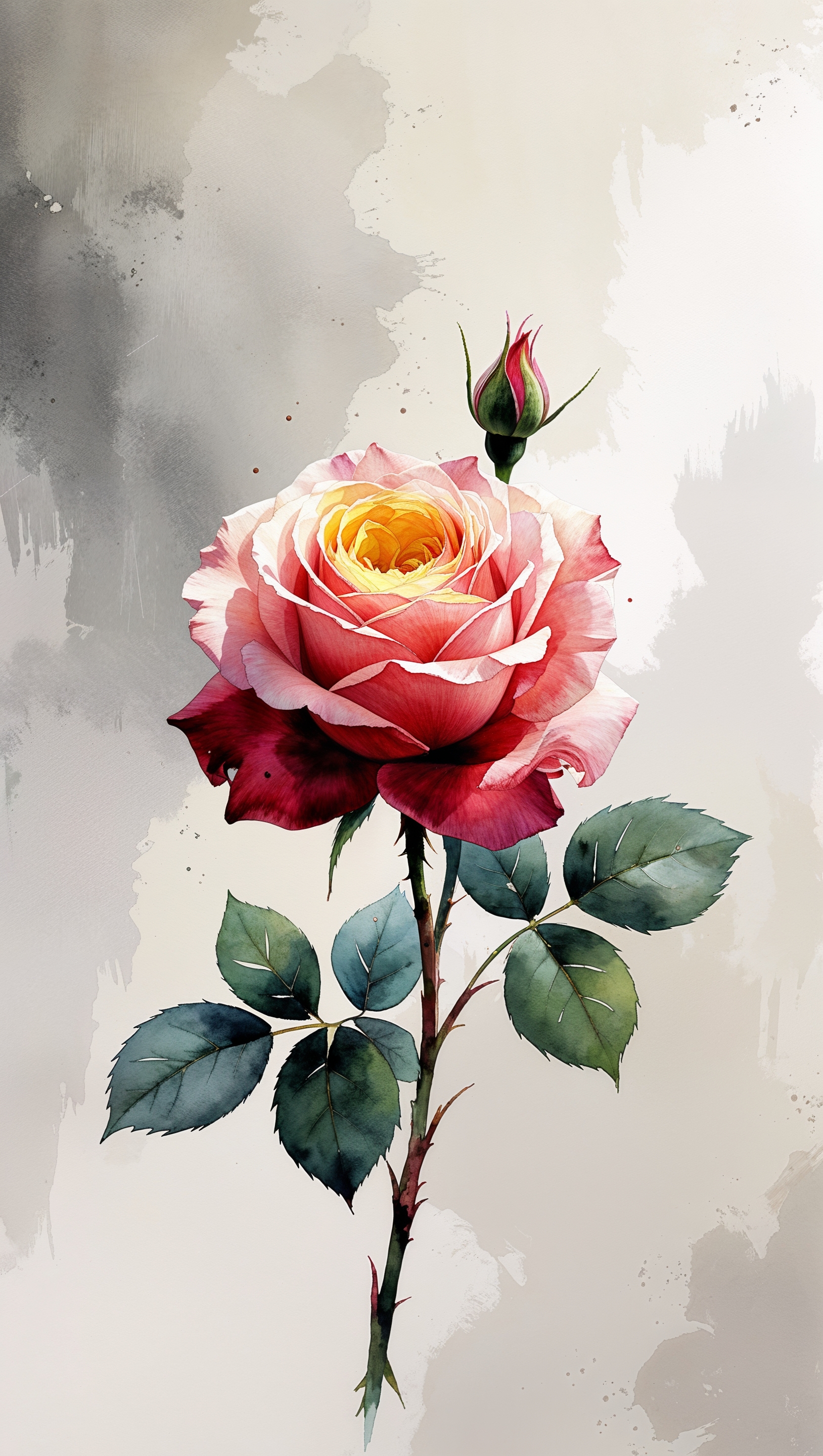1664x2944 iPhone wallpaper with a red rose in watercolor style