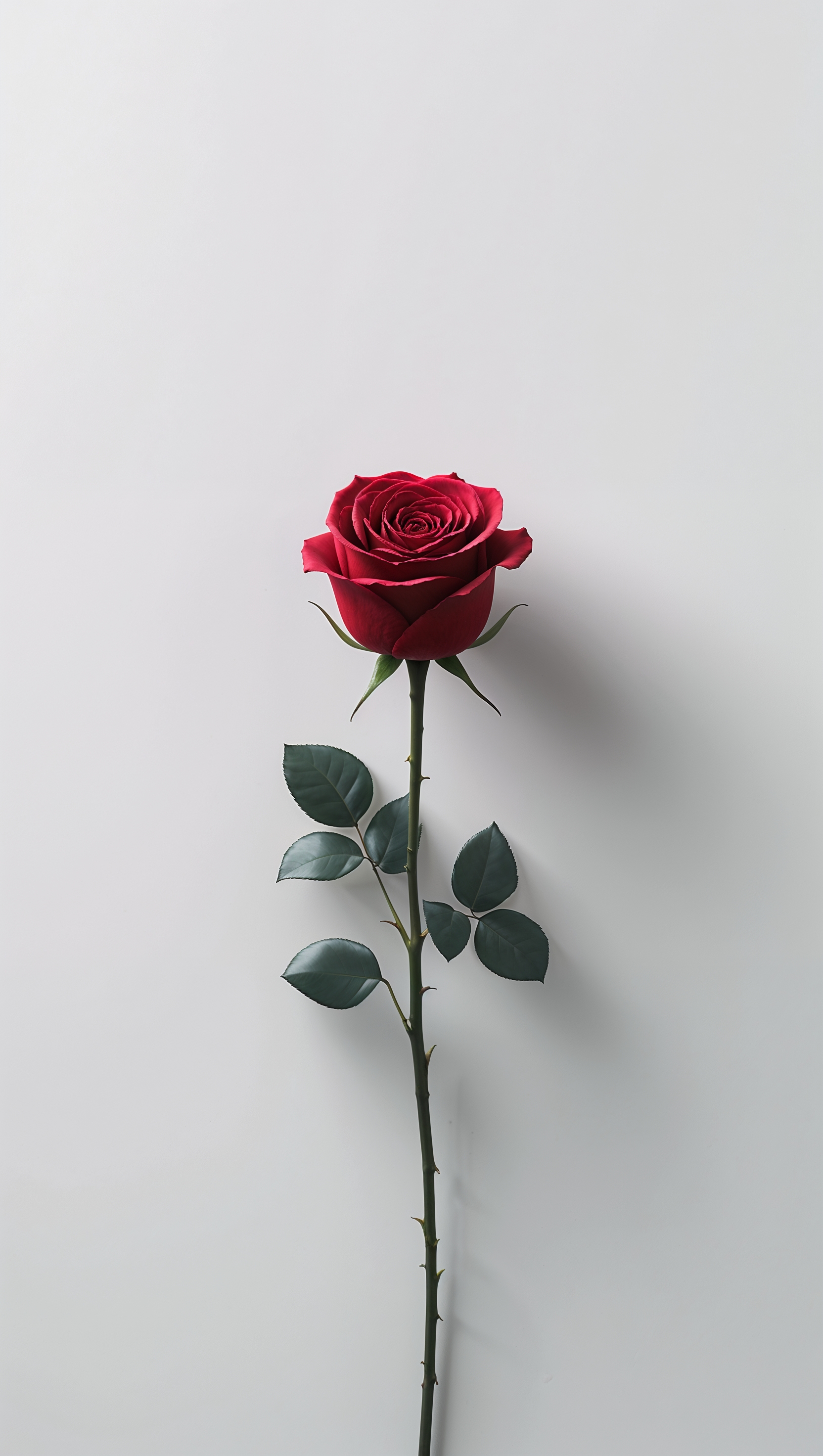 1664x2944 iPhone wallpaper with a red rose on a simple white background