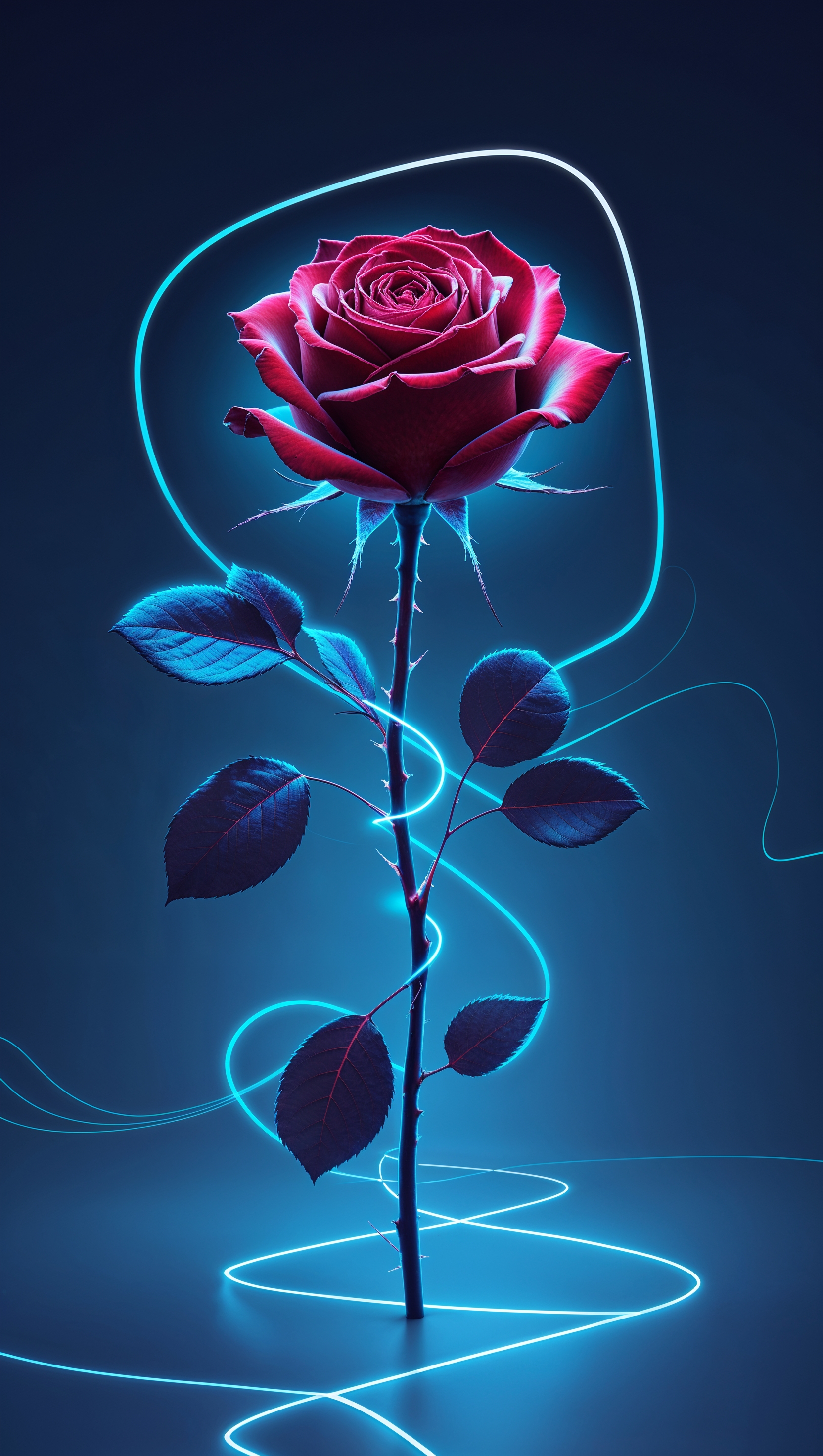 1664x2944 iPhone wallpaper with a red rose and neon lines