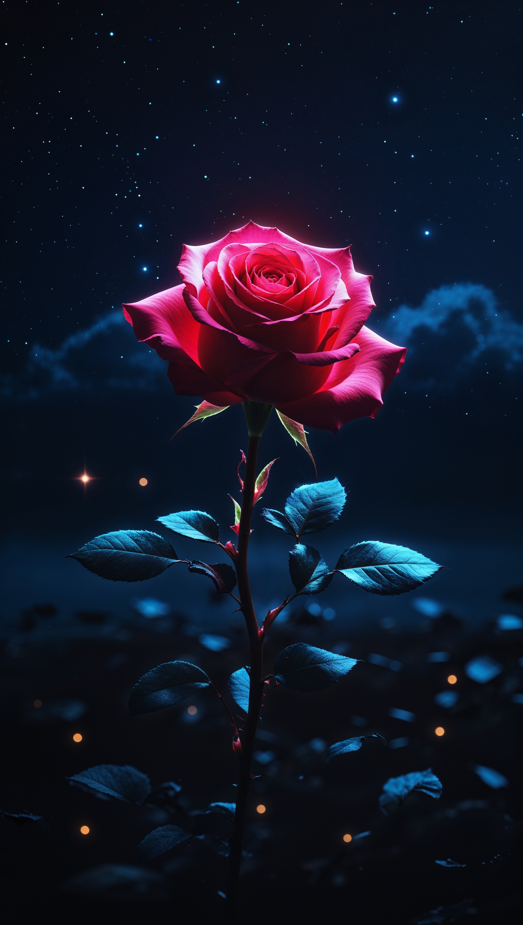 1664x2944 iPhone wallpaper with a glowing red rose at night