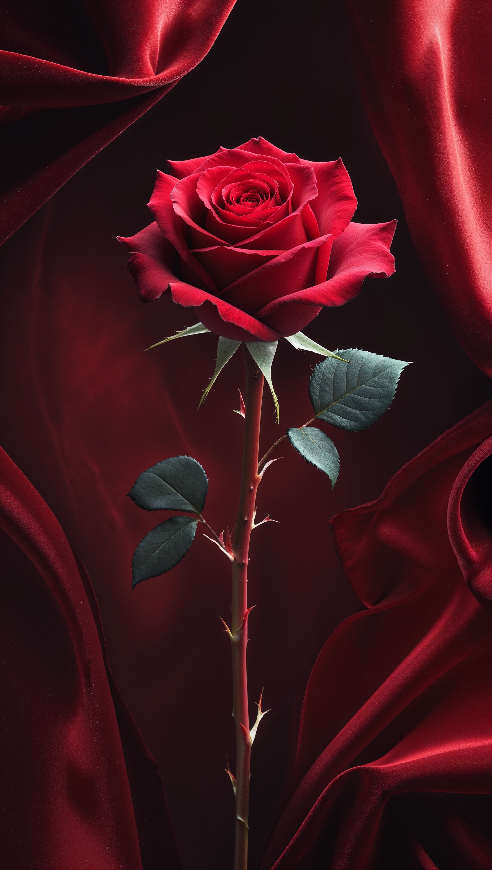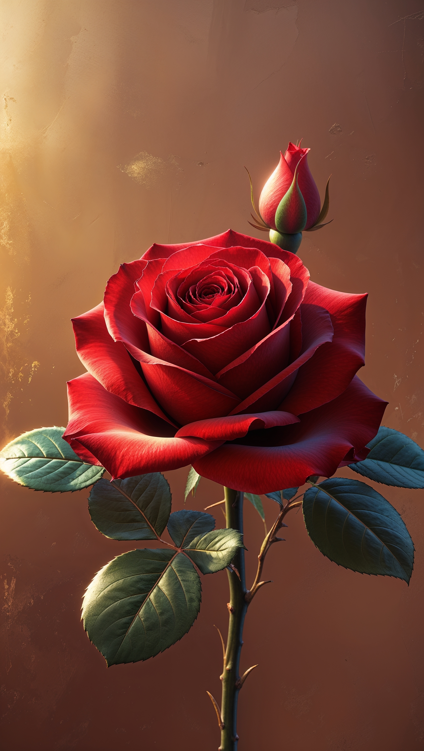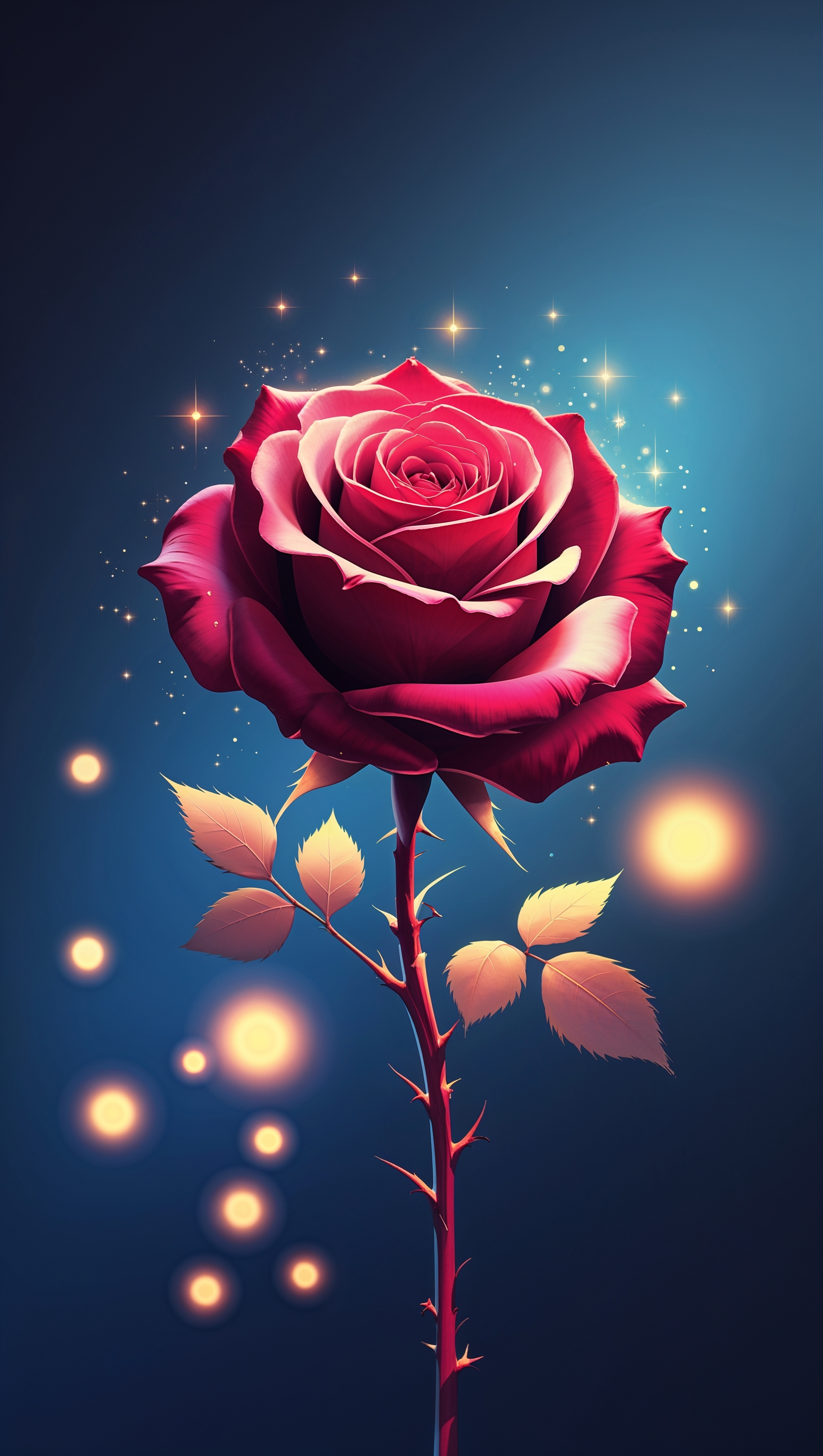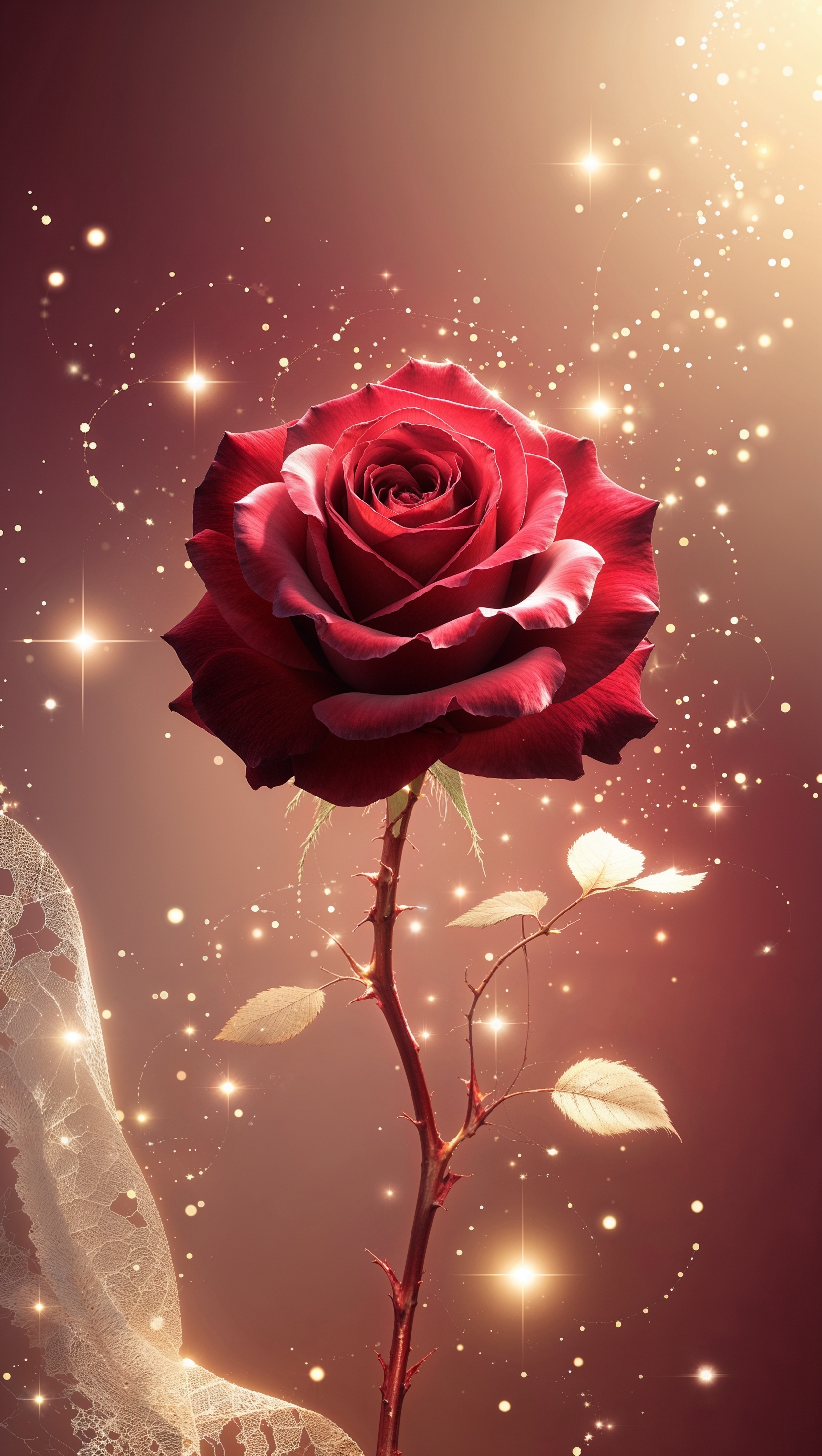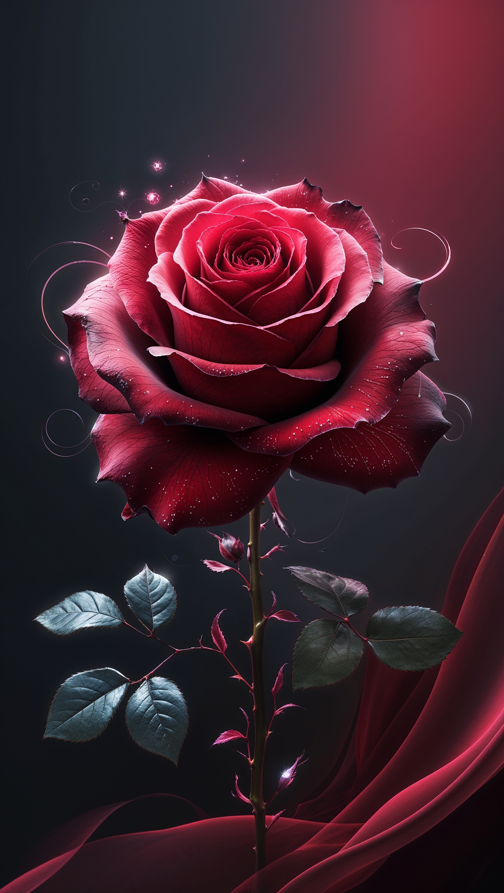 1664x2944 iPhone wallpaper with a red rose in fantasy style