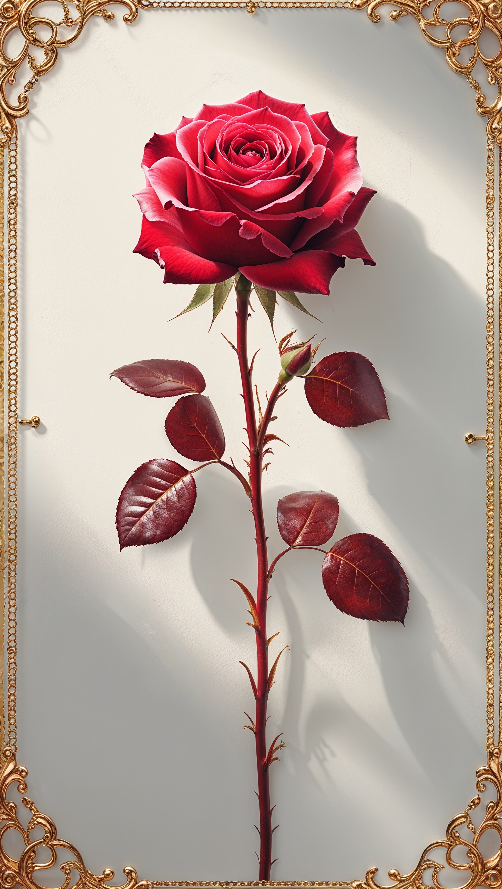 1664x2944 iPhone wallpaper with a red rose and golden border