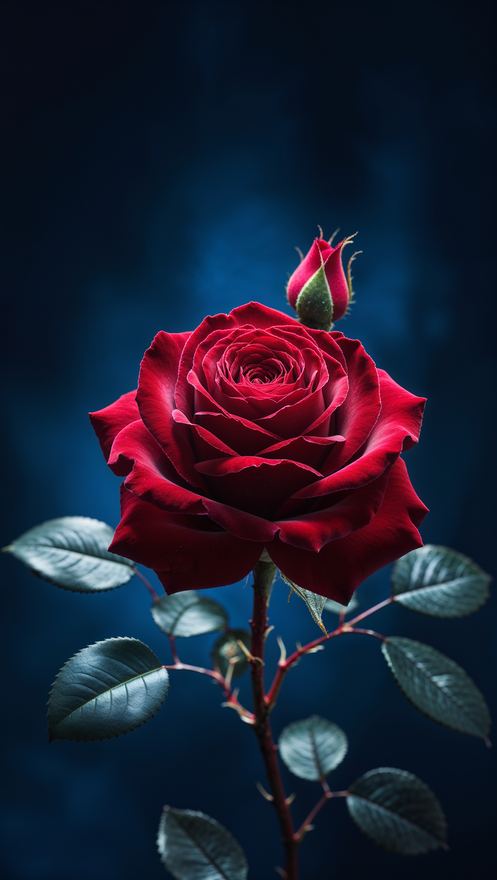 1664x2944 iPhone wallpaper with a red rose and dark blue background