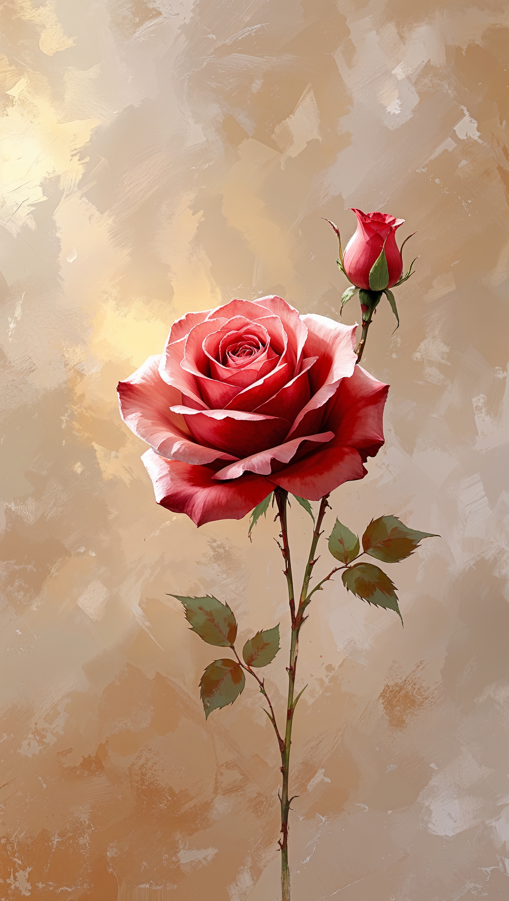 1664x2944 iPhone wallpaper with a red rose in romantic and soft style