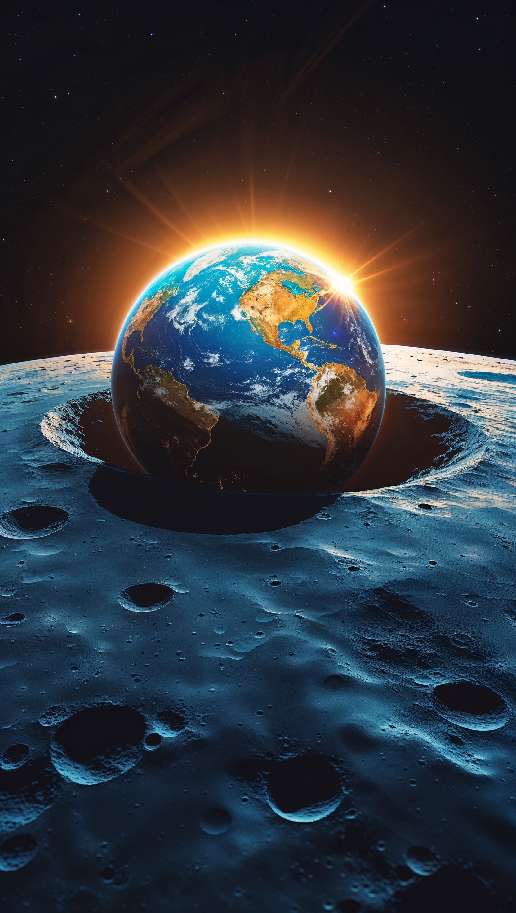 1664x2944 Earth seen from the Moon, glowing with sunlight, inspirational iPhone background, 4K
