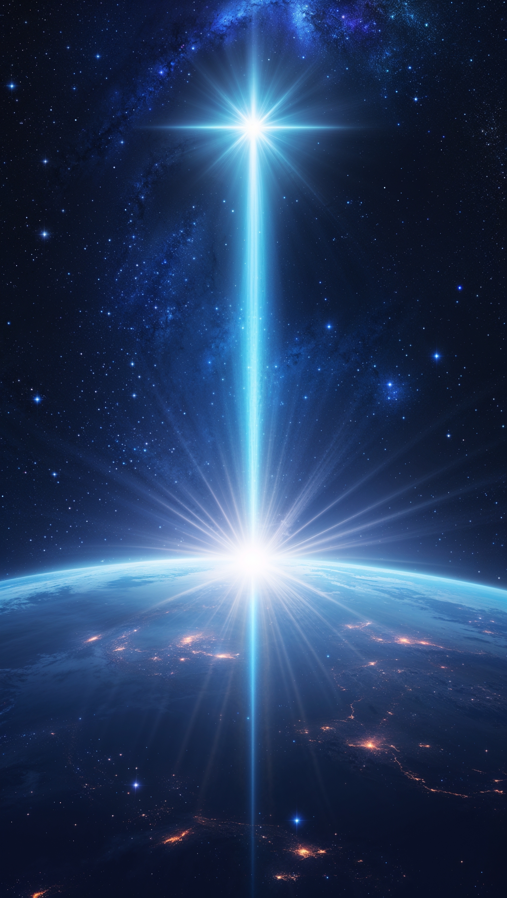 1664x2944 Light beam rising from a planet into space, symbol of hope and connection, spiritual 4K