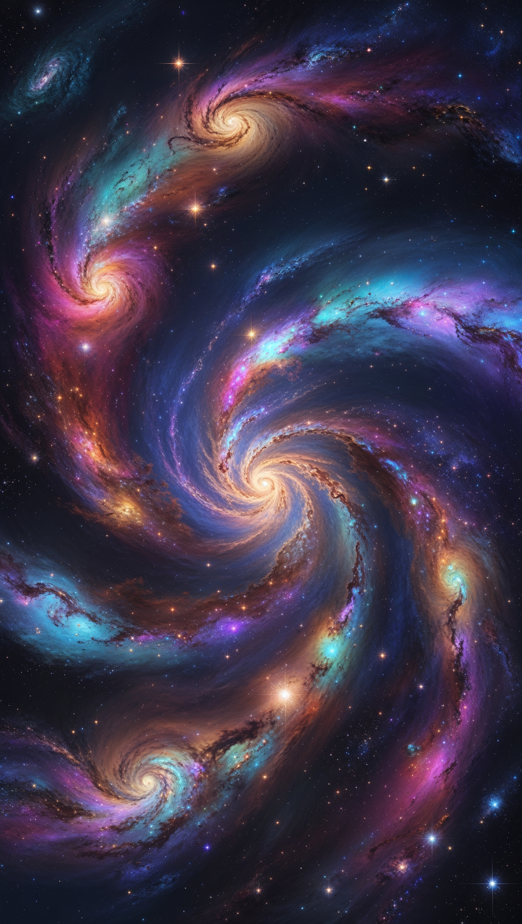 1664x2944 Top view of spiral galaxy, full detail and colorful lights, artistic 4K image