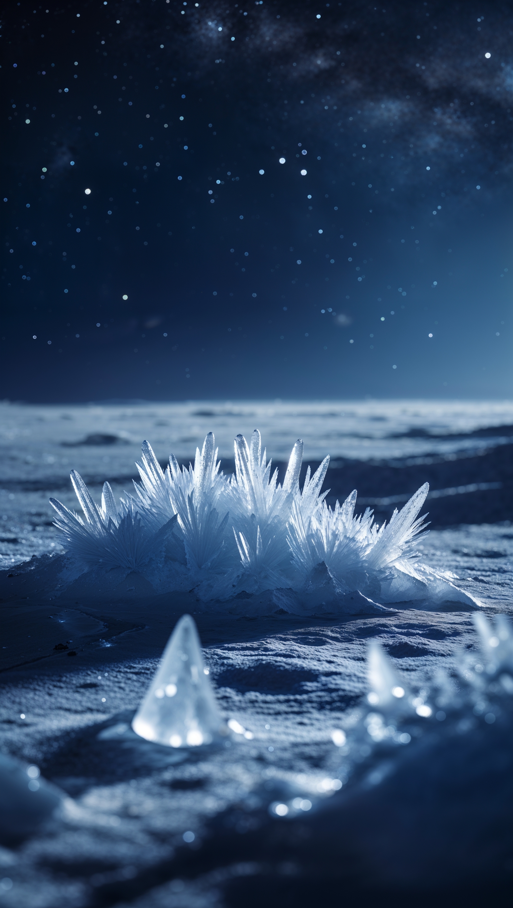 1664x2944 Icy moon surface with starlight reflections, cold and beautiful, iPhone 4K wallpaper